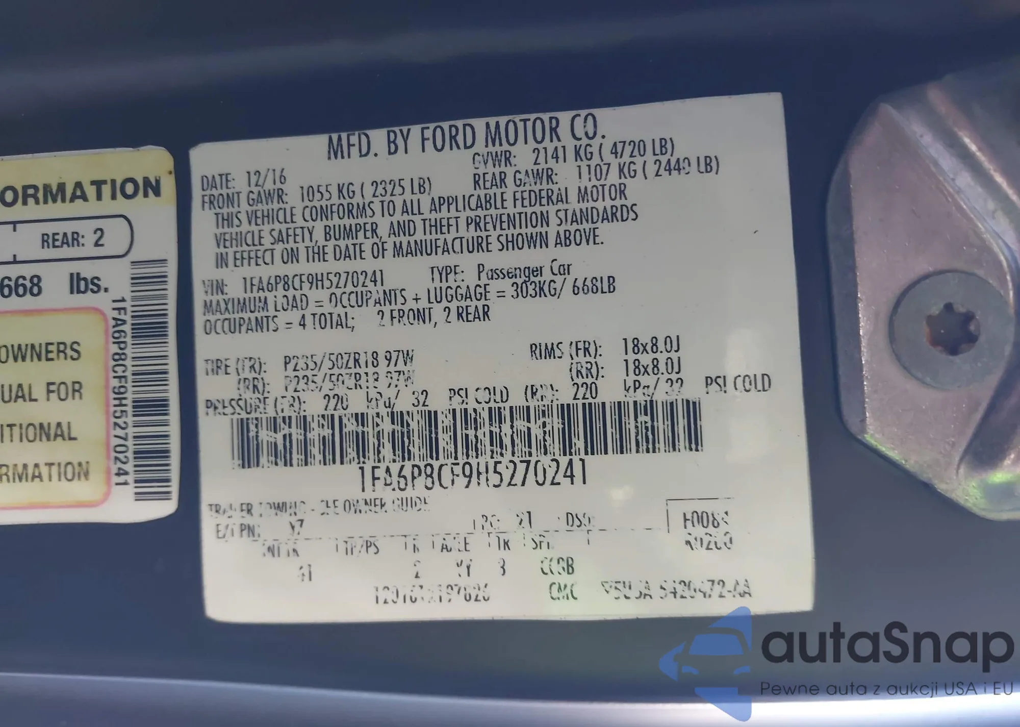 • VIN 1FA6P8CF9H5270241