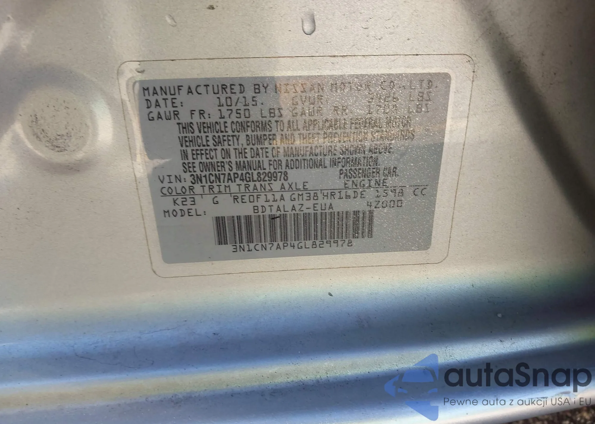 • VIN 3N1CN7AP4GL829978