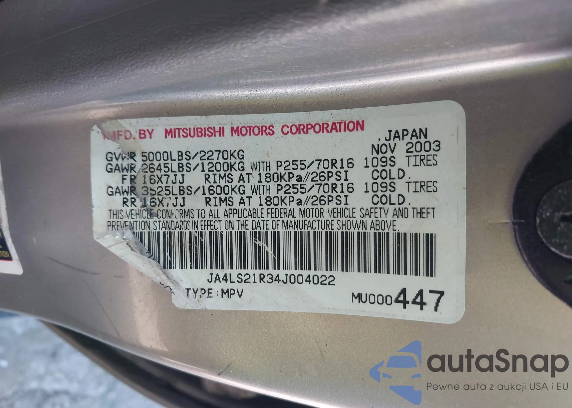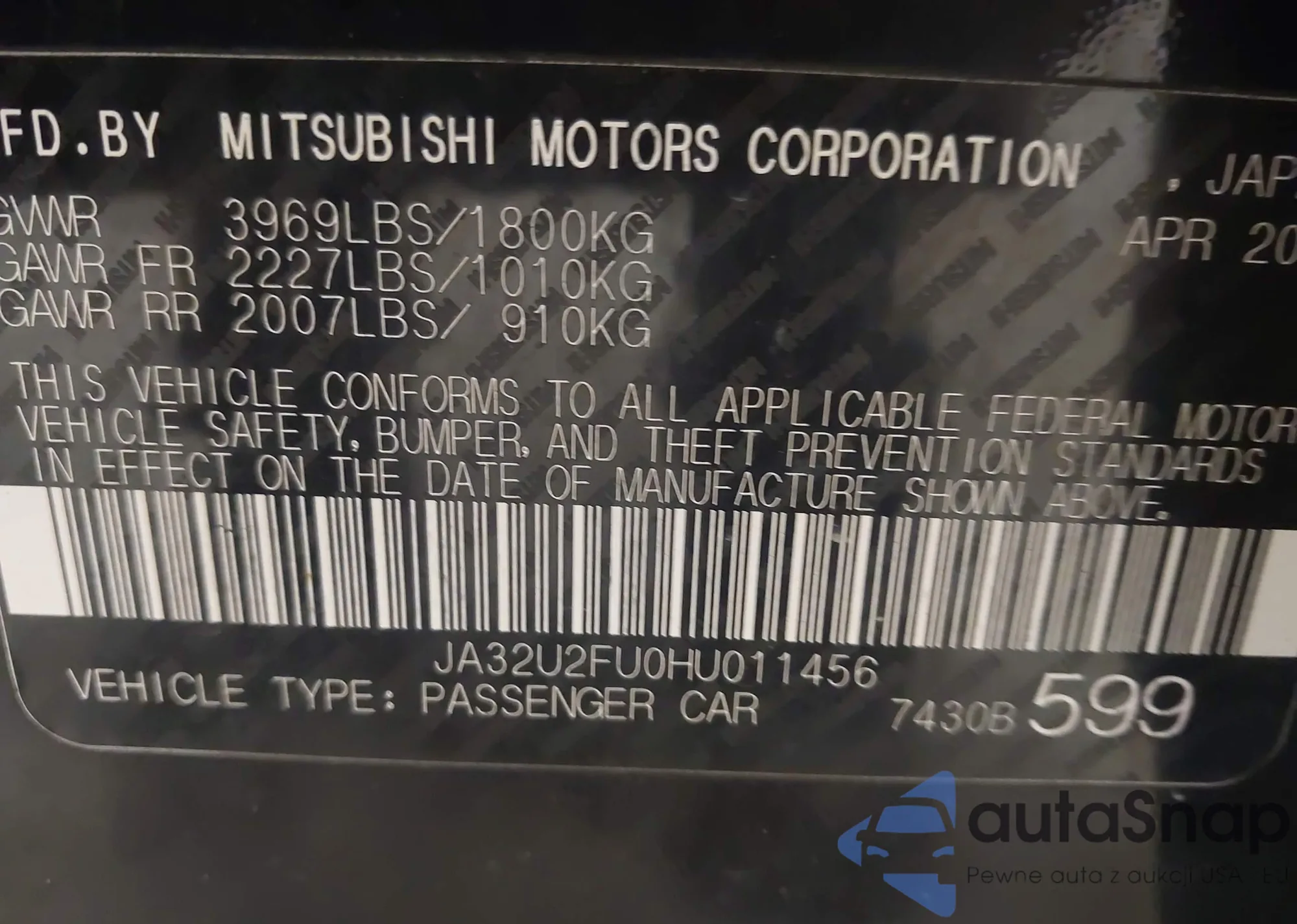 • VIN 2HGFA1F50AH306453