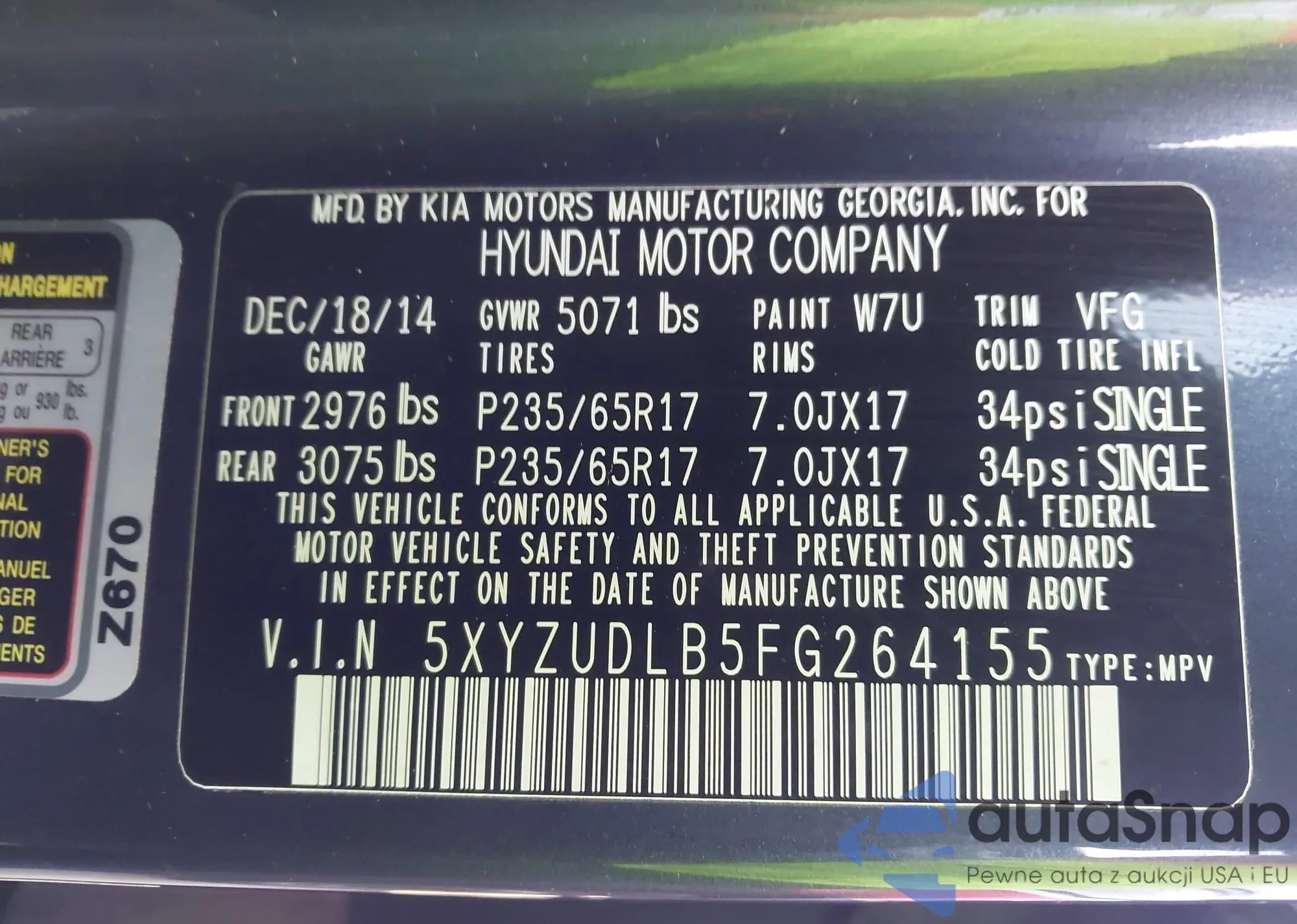 • VIN 5XYZUDLB5FG264155