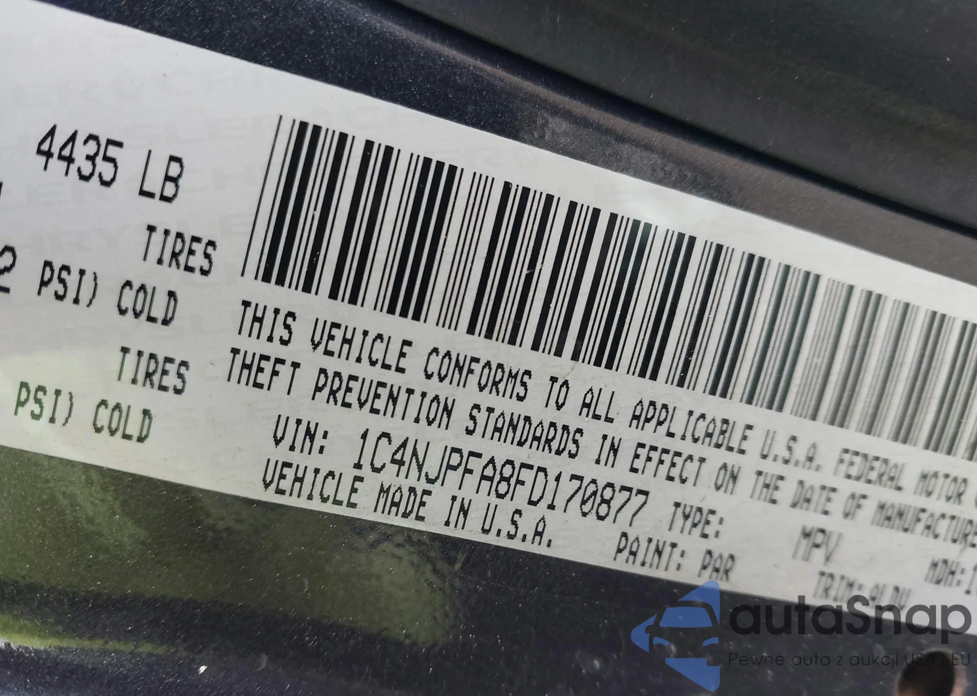• VIN 1C4NJPFA8FD170877