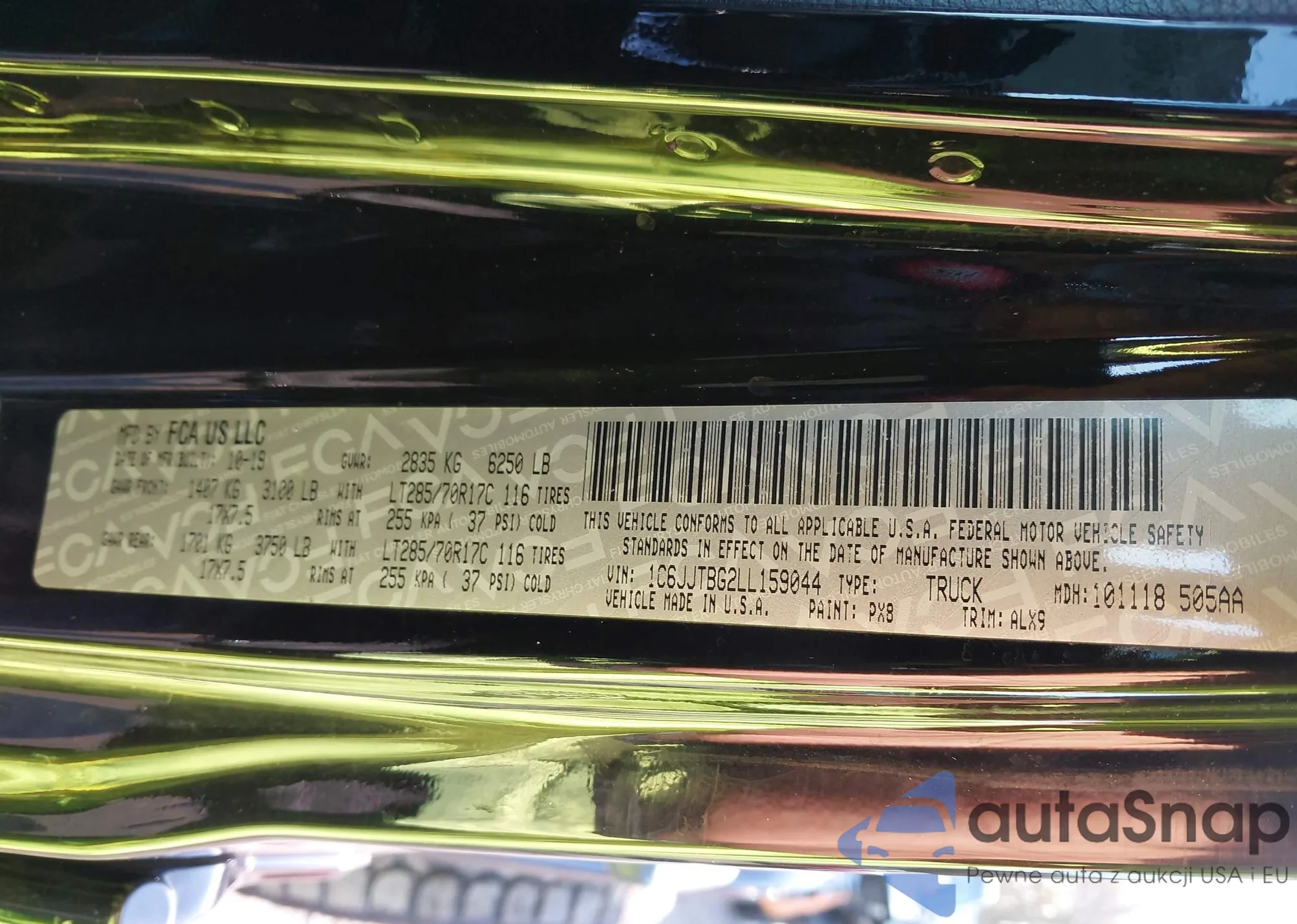 • VIN 1C6JJTBG2LL159044