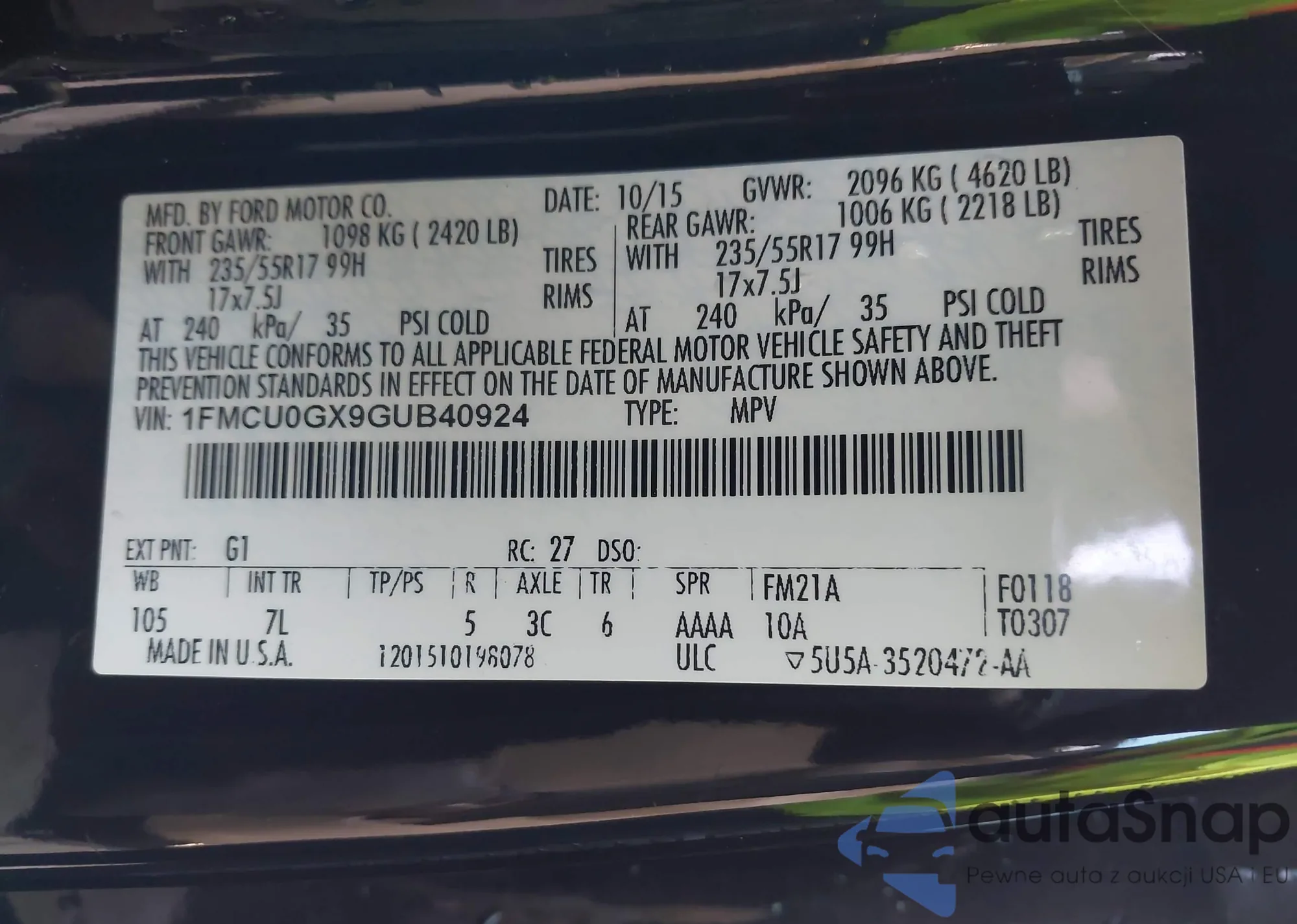 LOT: 43891582 VIN: 2G11Z5S37L9105619