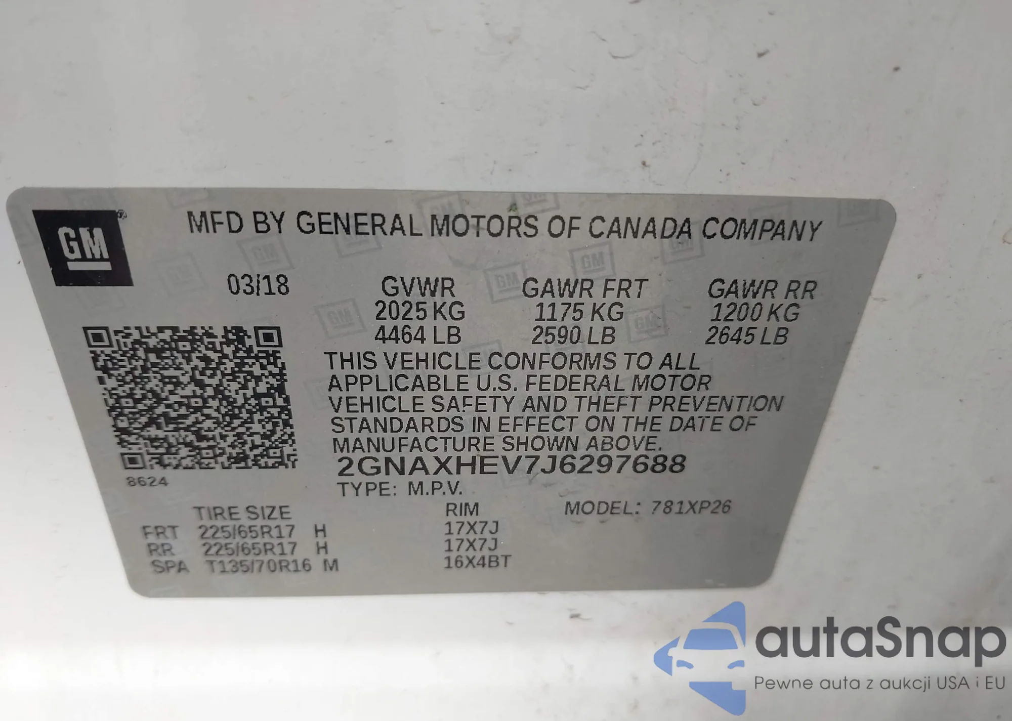 LOT: 42590239 VIN: 2GNAXHEV7J6297688