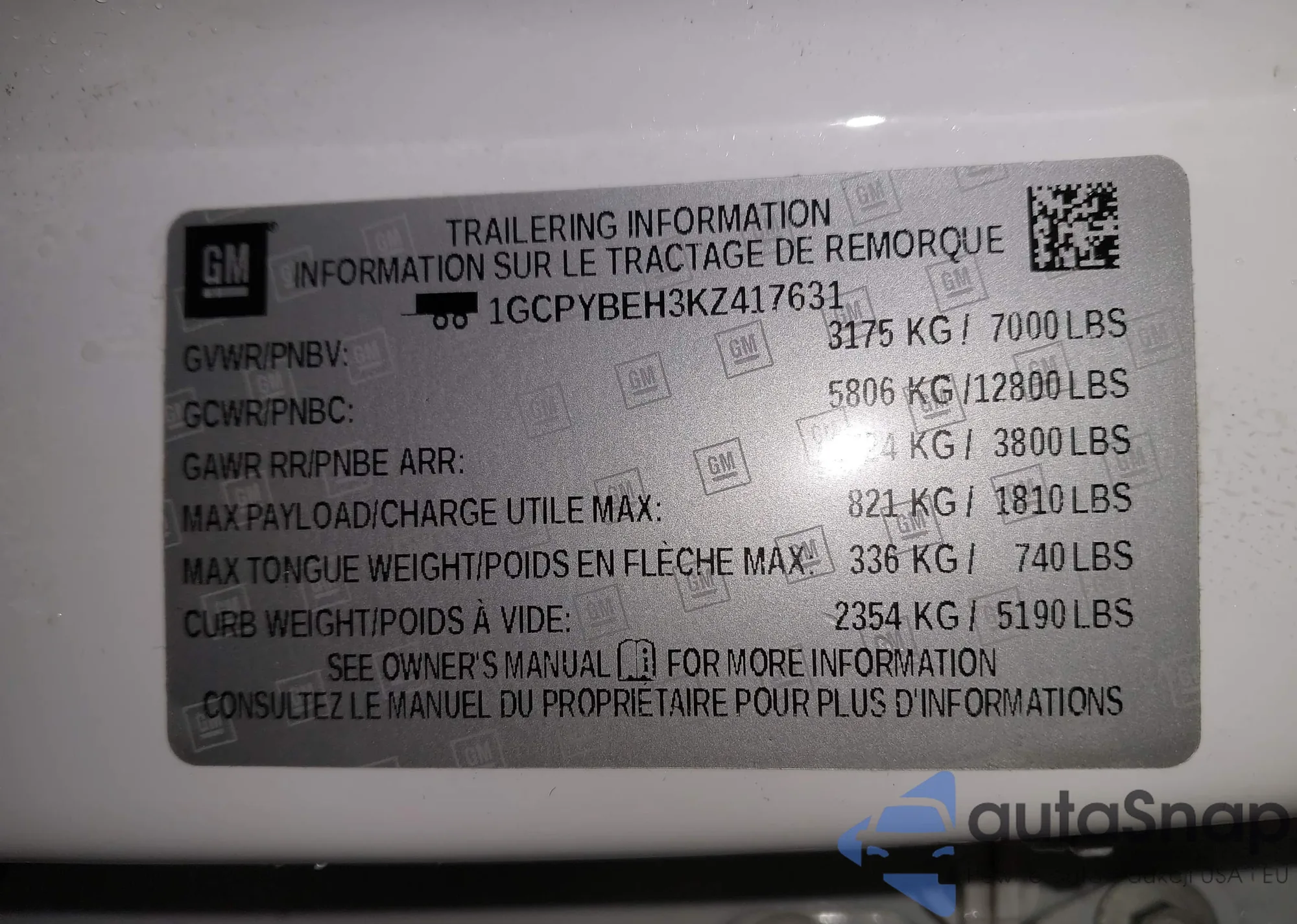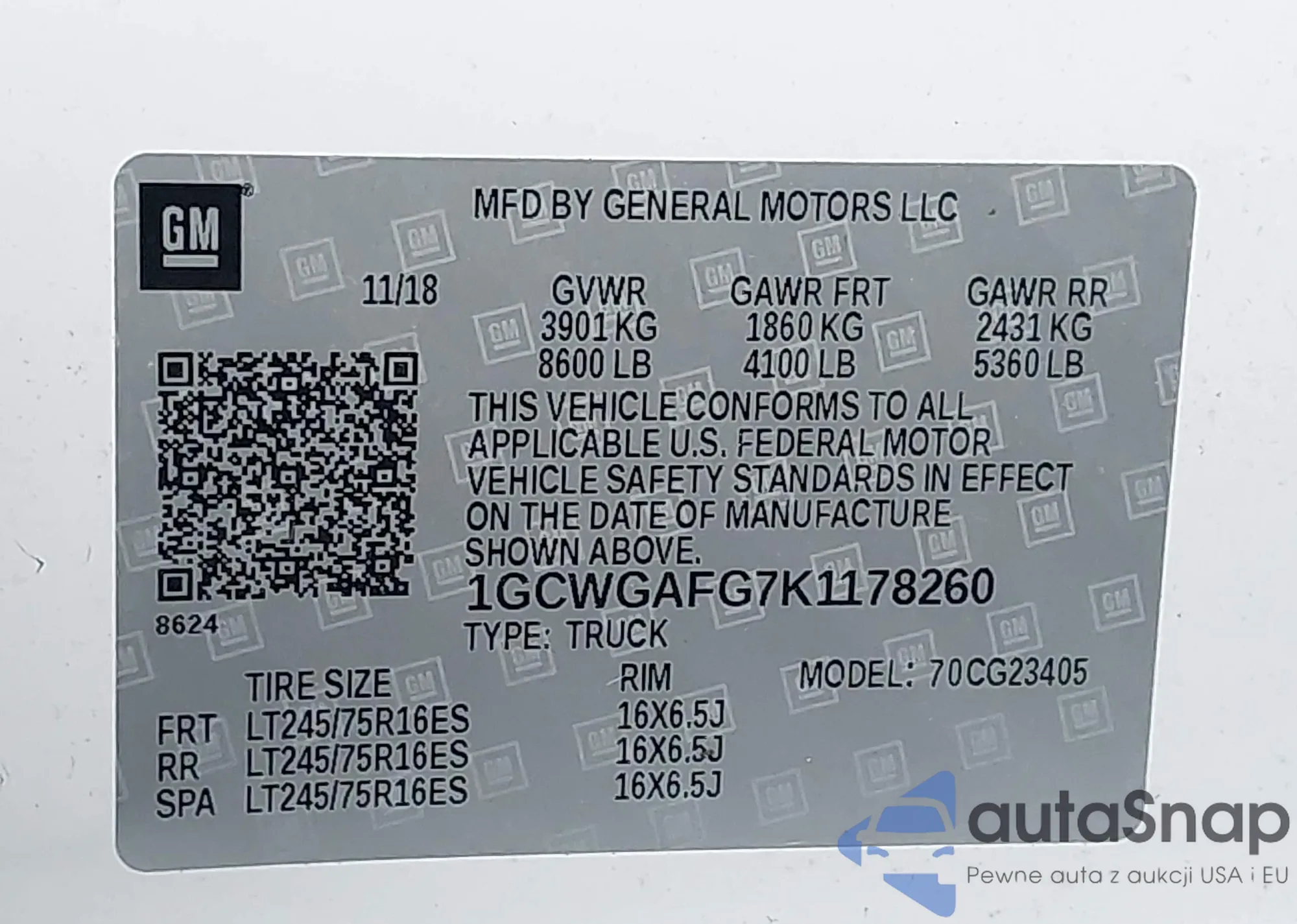 LOT: 43866976 VIN: 1GCWGAFG7K1178260
