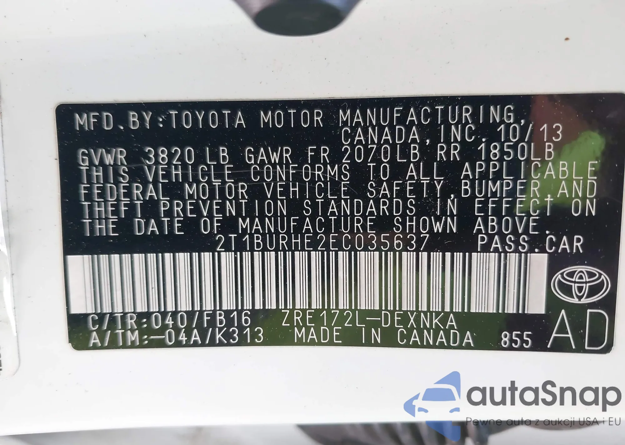 • VIN 2T1BU4EE8BC751705