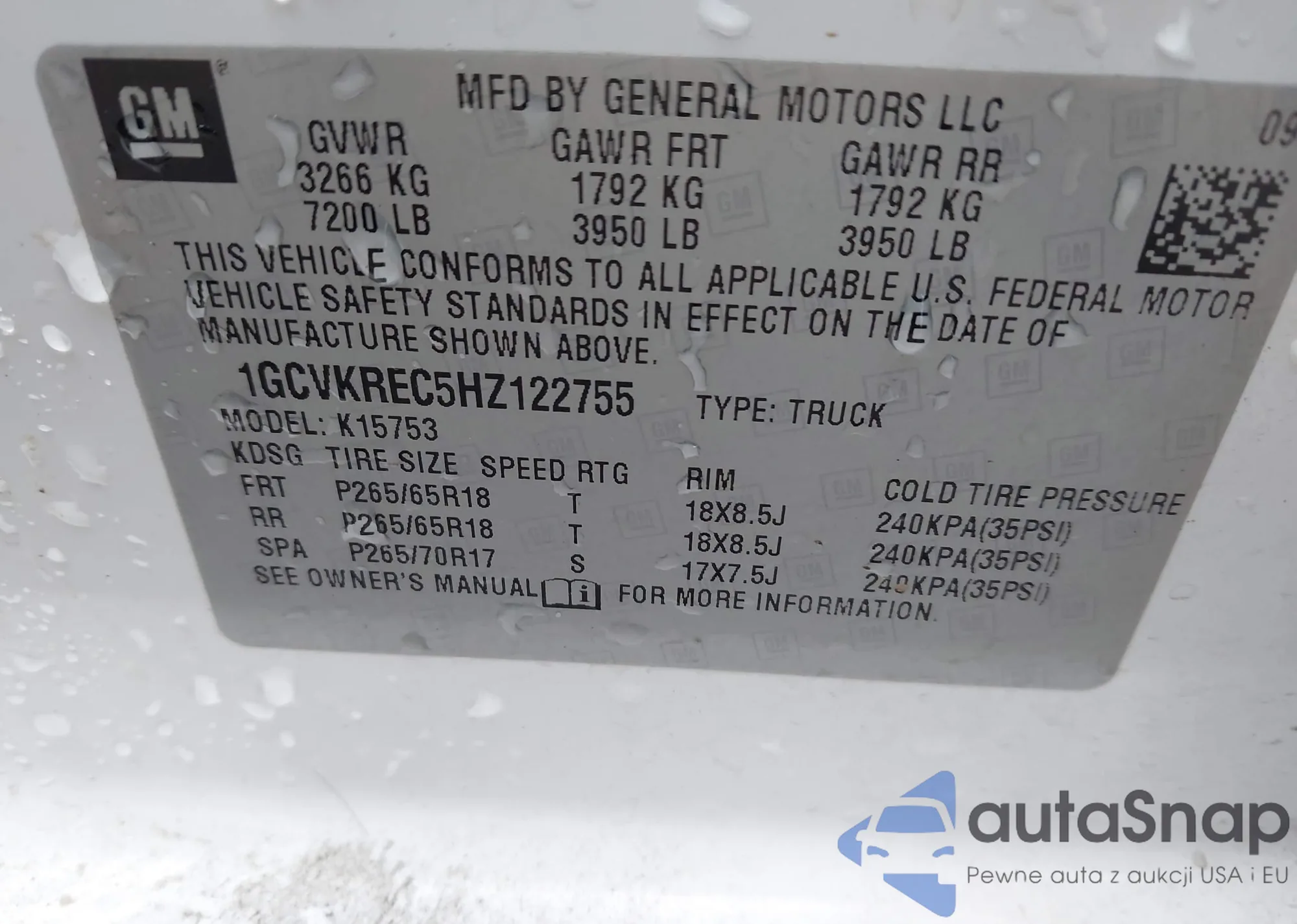 • VIN 1GCVKREC5HZ122755
