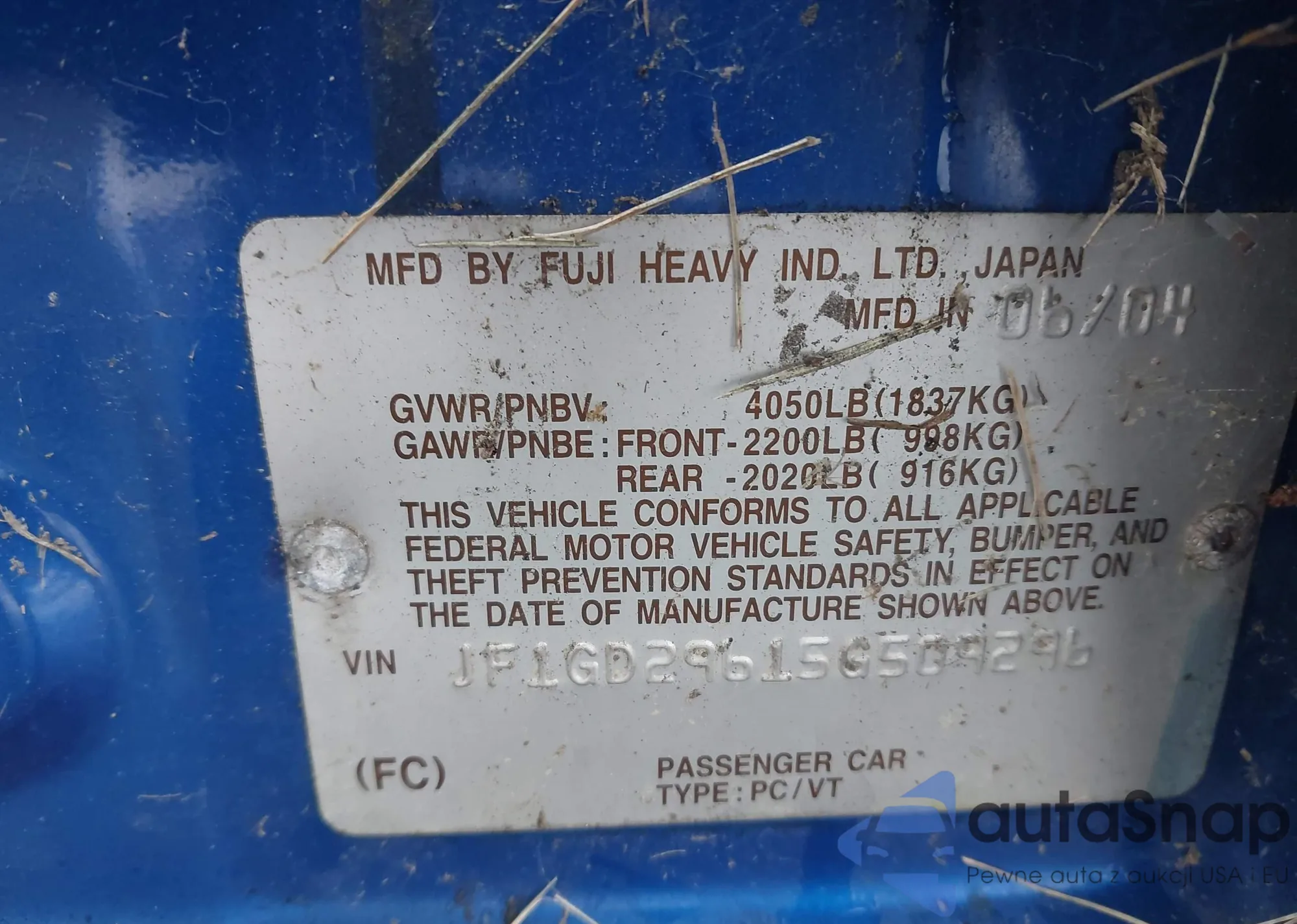 LOT: 44014514 VIN: JF1GD29615G509296