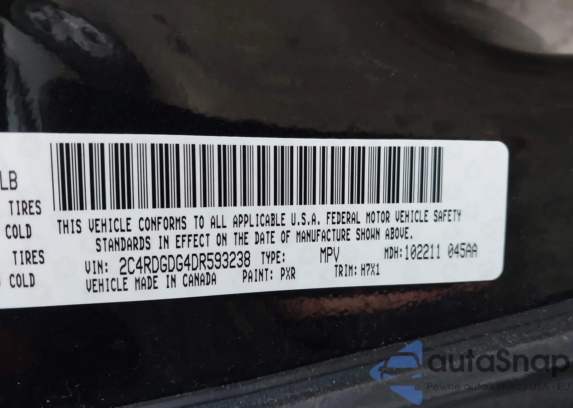 LOT: 43979703 VIN: 2C4RDGDG4DR593238