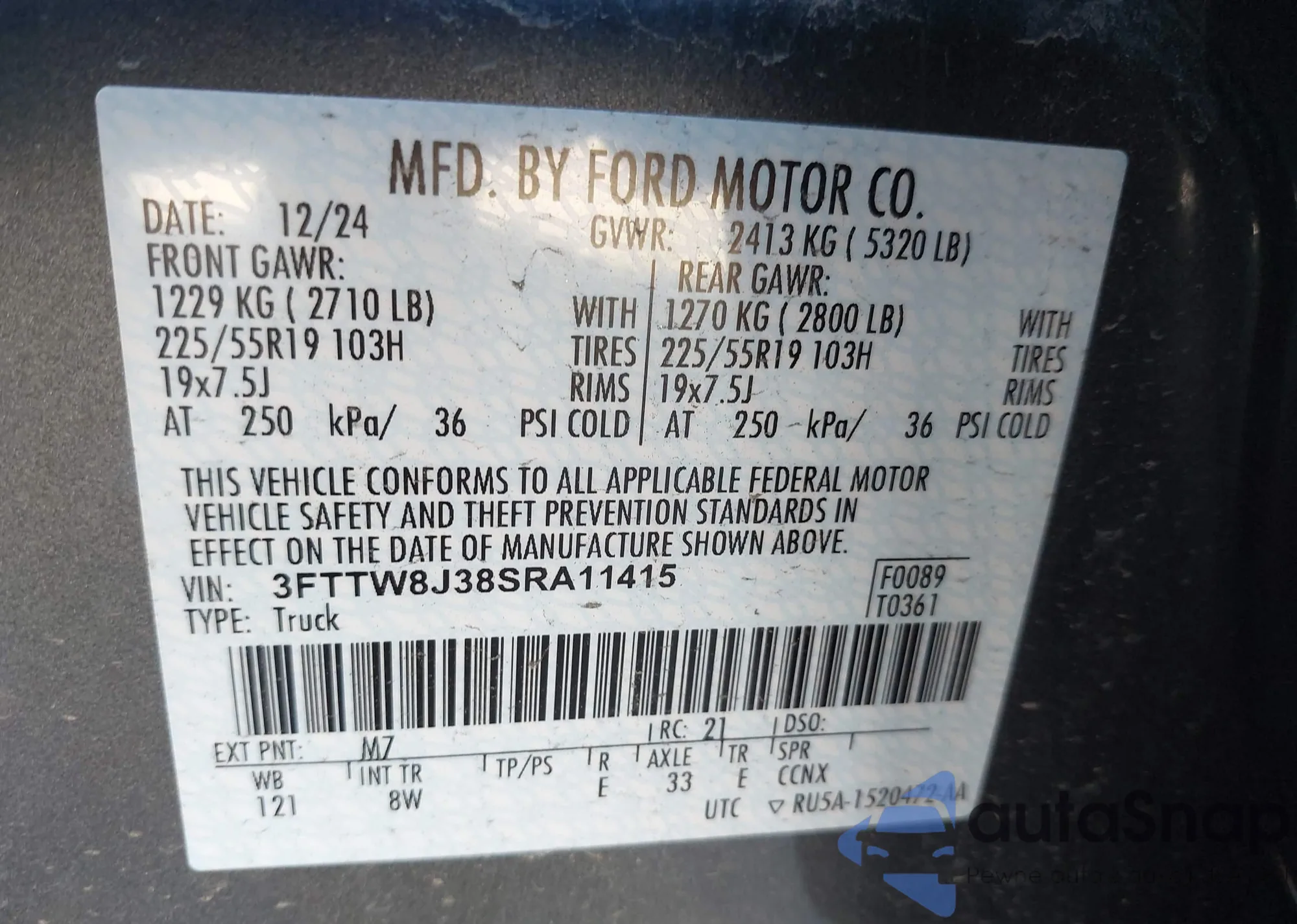 • VIN 3FTTW8J38SRA11415