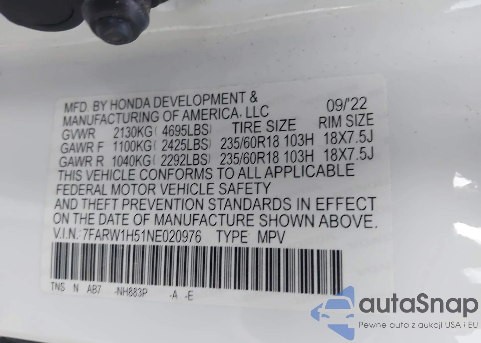 • VIN 7FARW1H51NE020976