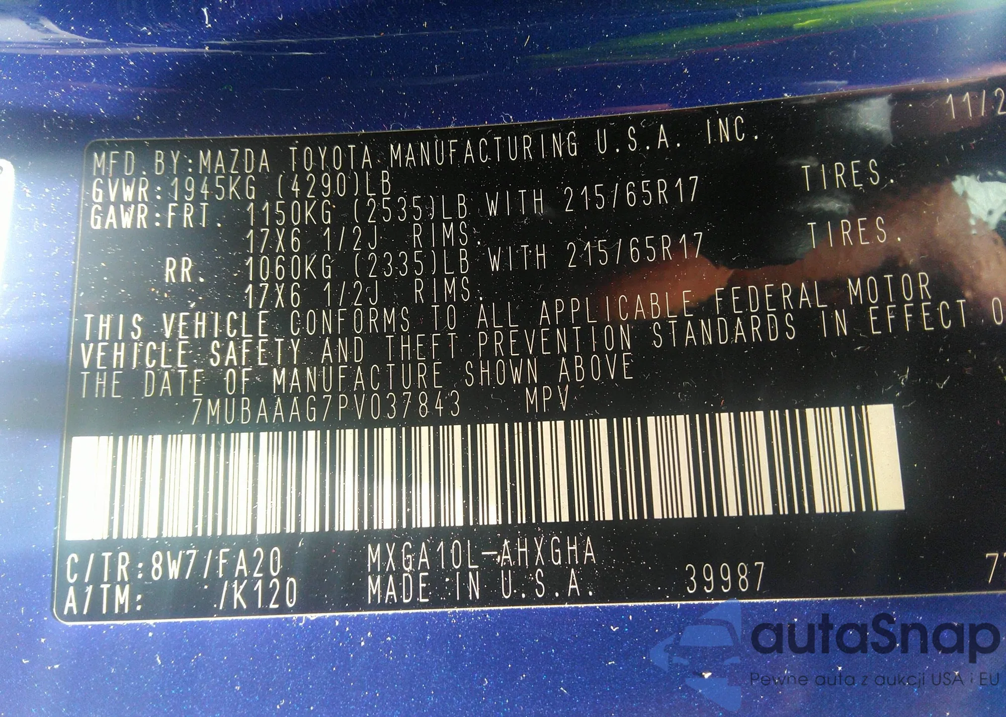 • VIN 7MUBAAAG7PV037843