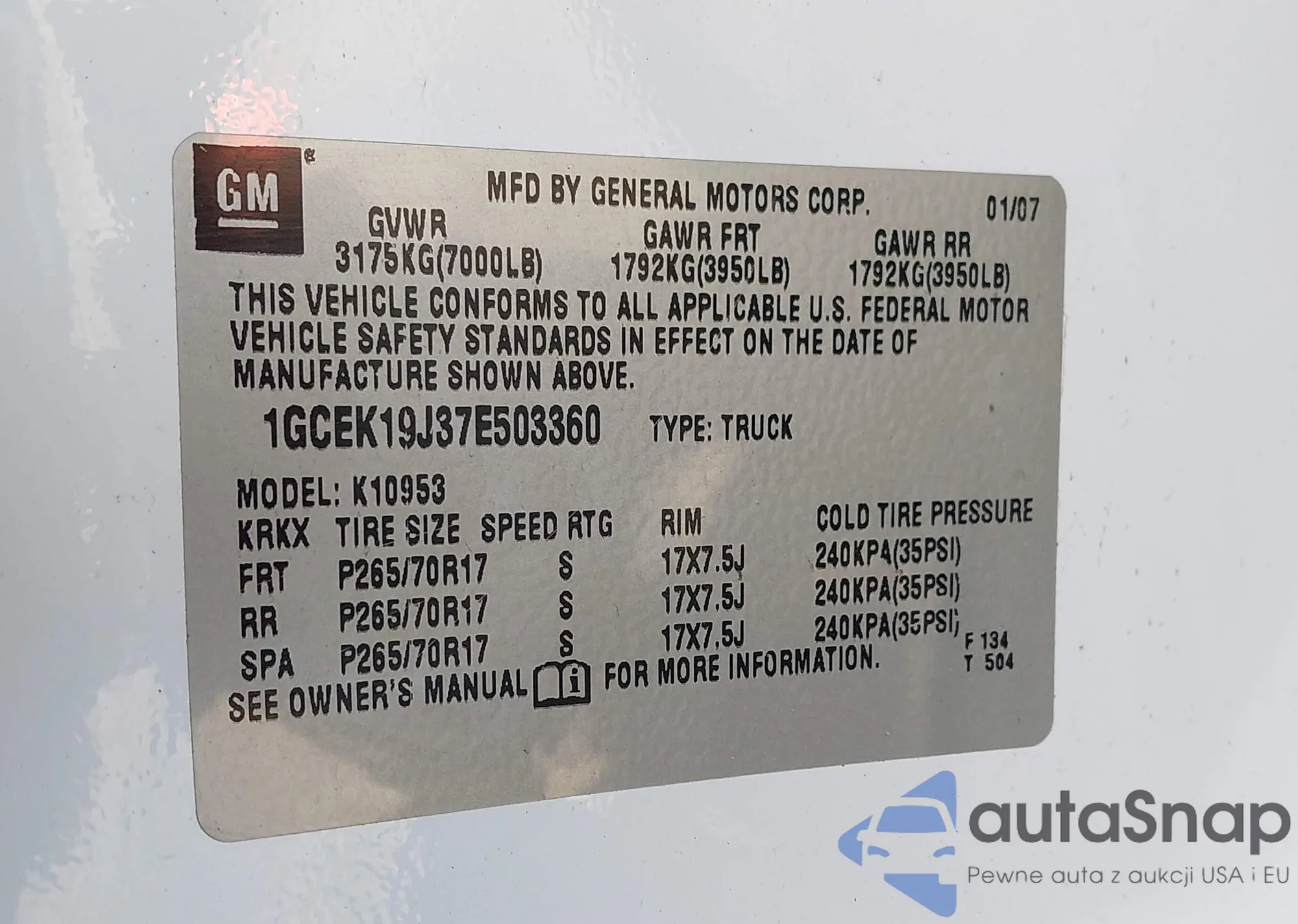 • VIN 1GCEK19J37E503360