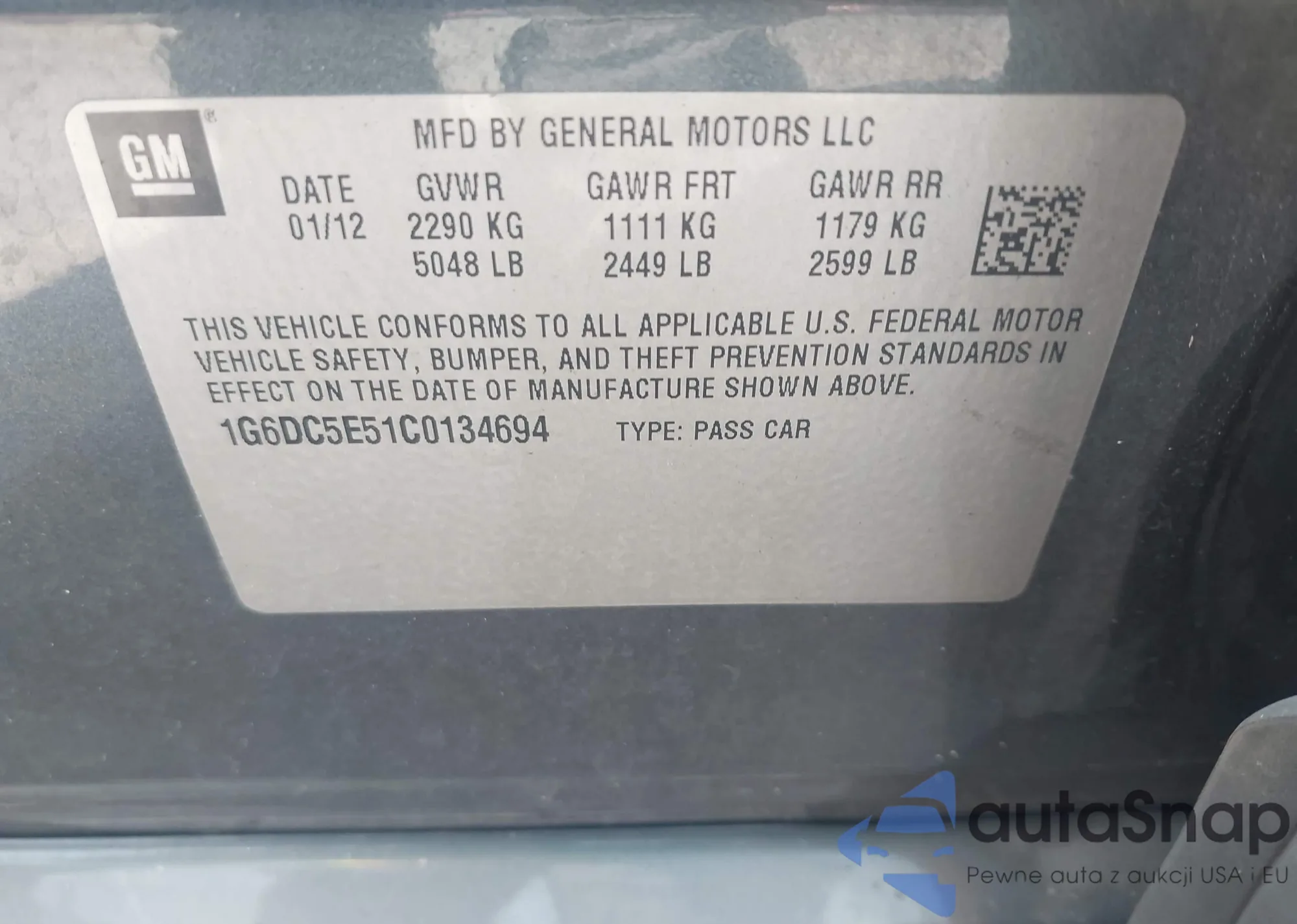 LOT: 42950356 VIN: 1G6DC5E51C0134694