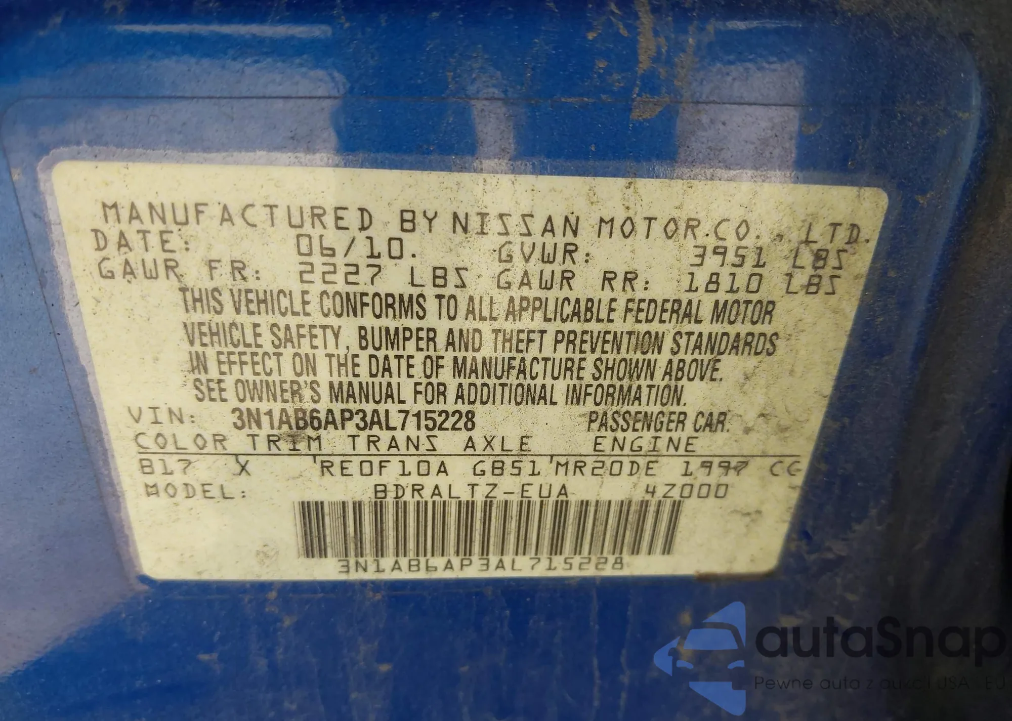 • VIN 3N1AB6AP3AL715228