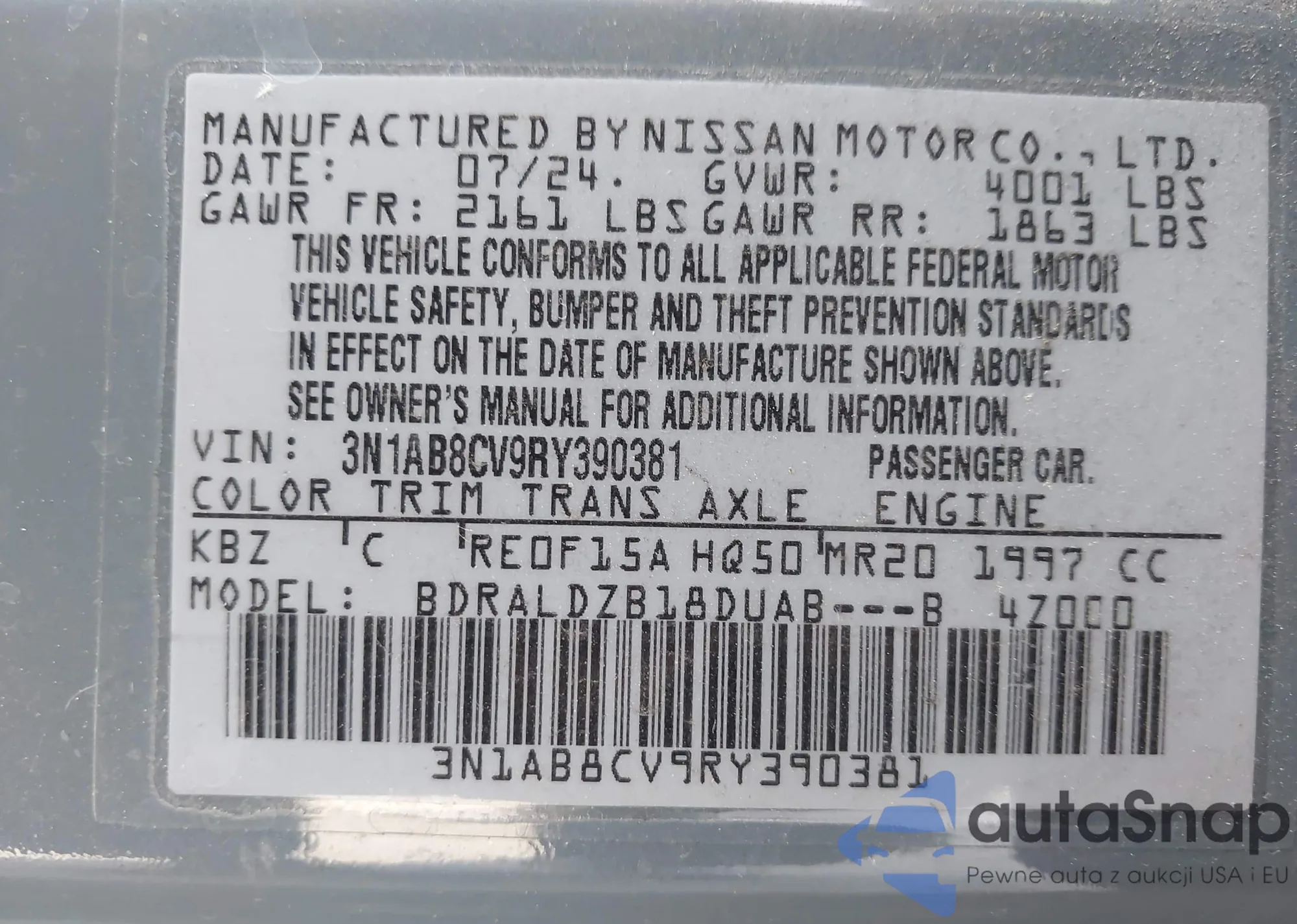 • VIN 3N1AB8CV9RY390381