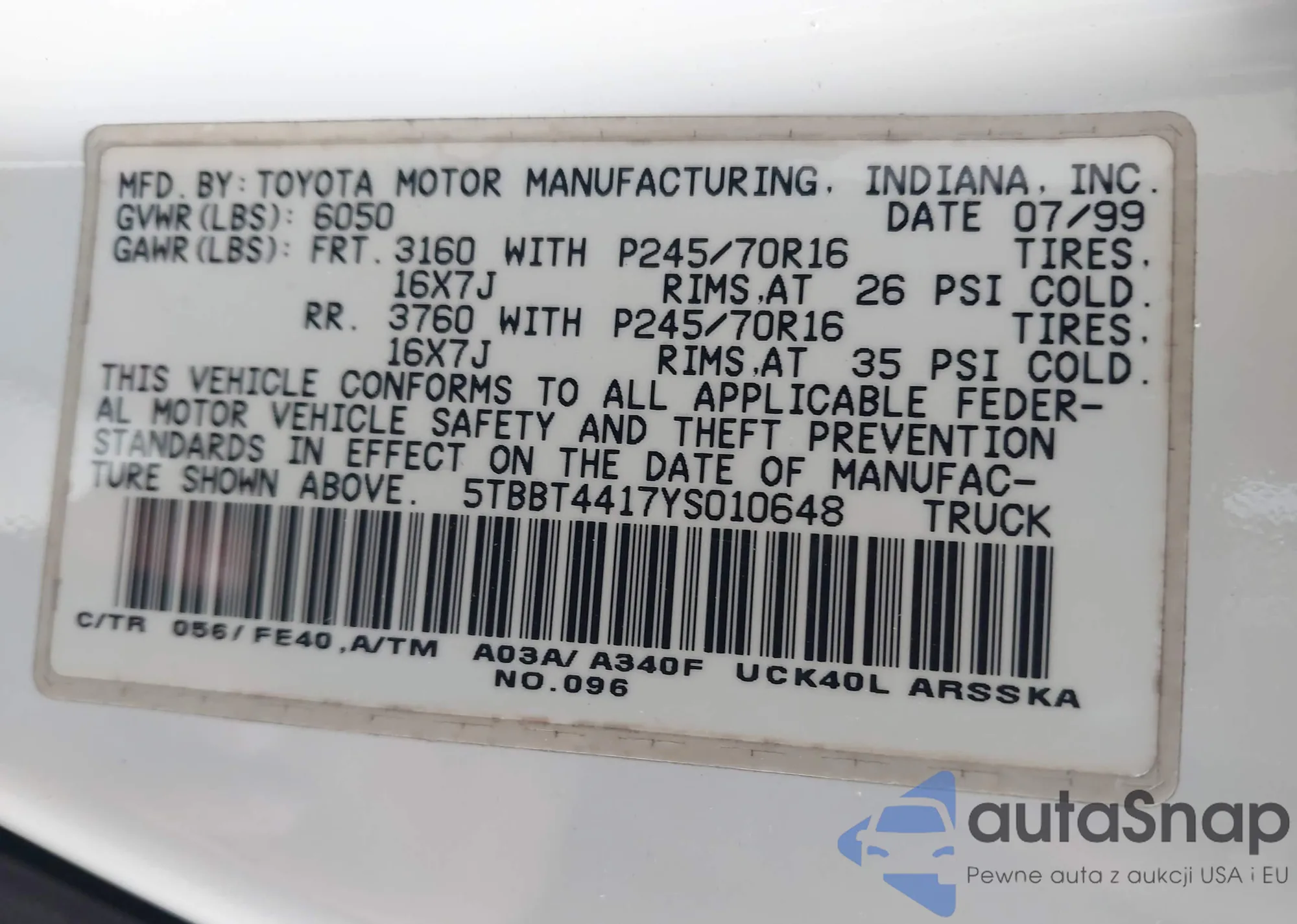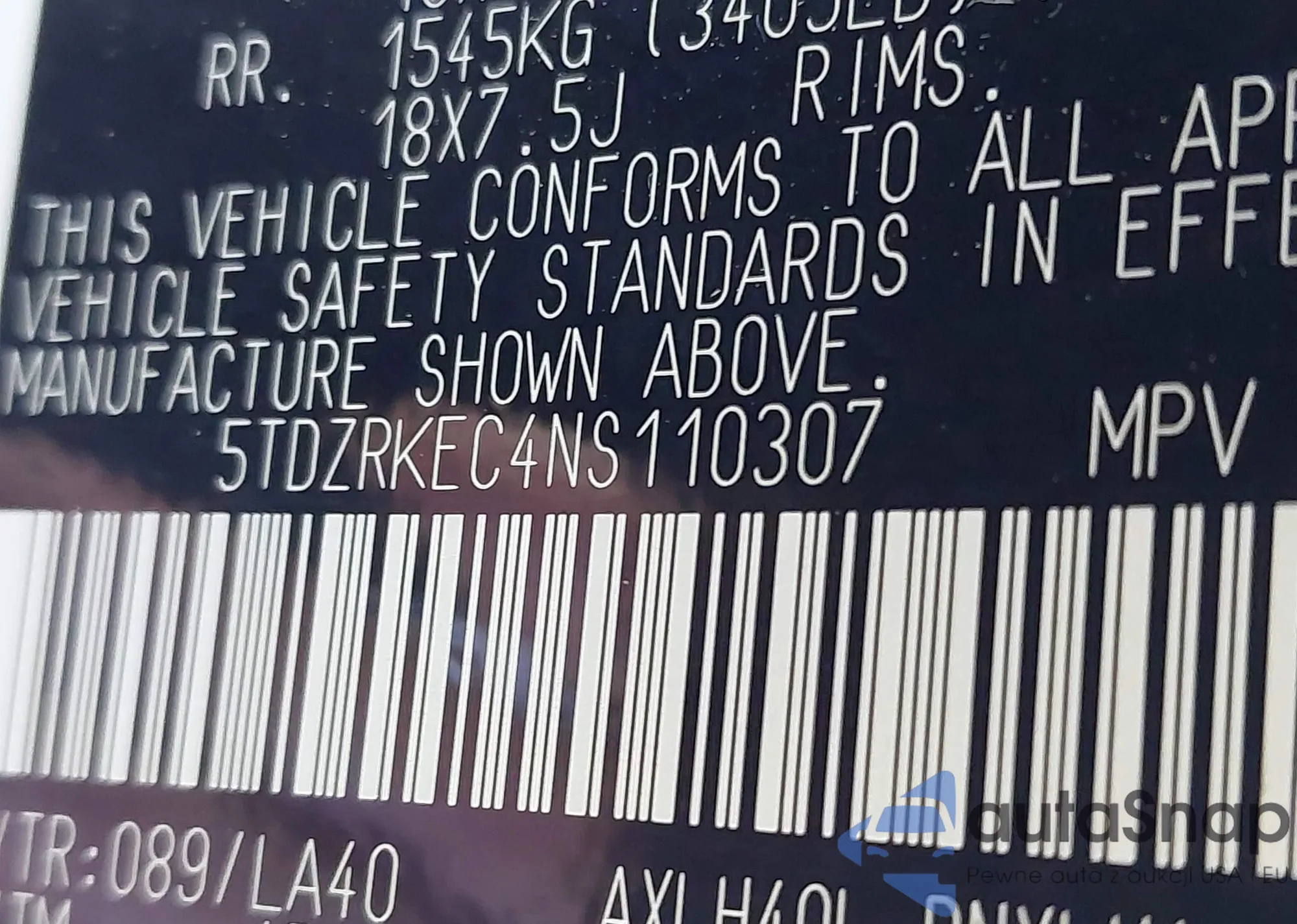 • VIN 5TDZRKEC4NS110307