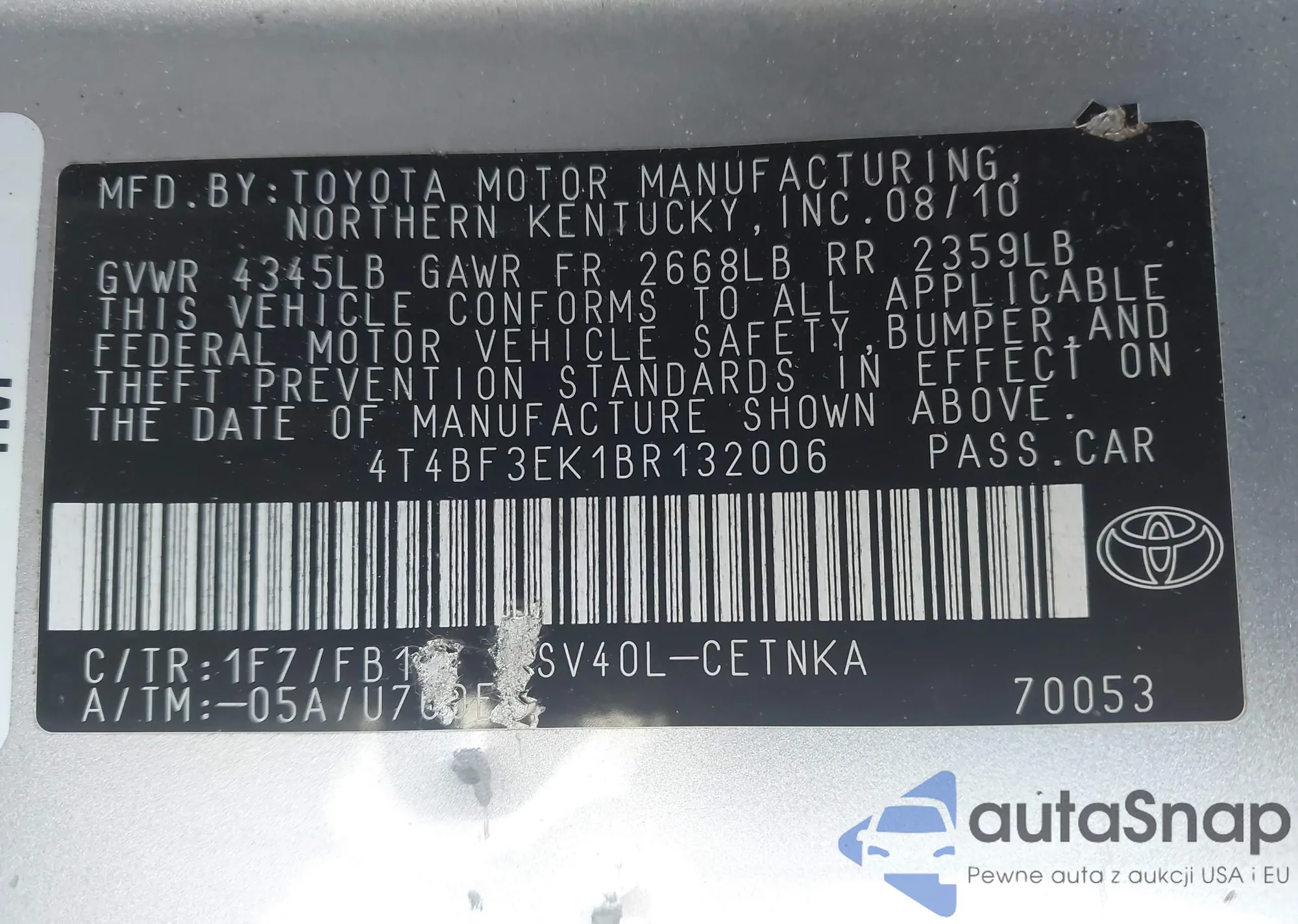 • VIN 4T4BF1FK3ER361875