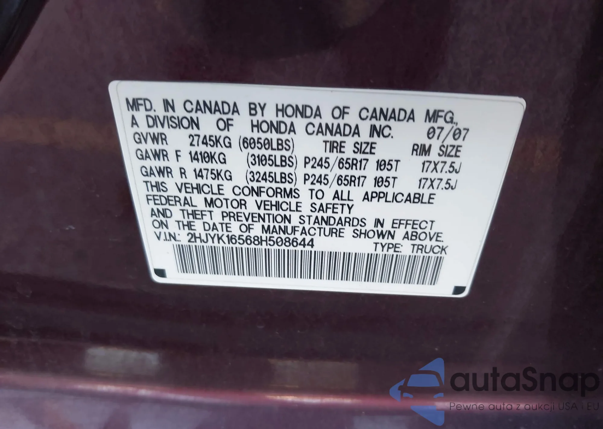 LOT: 44106643 VIN: 2HGFA16669H510582
