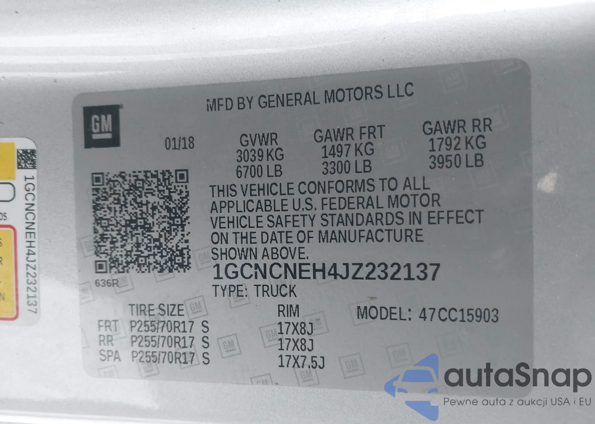 LOT: 43919818 VIN: 1GCNCNEH4JZ232137