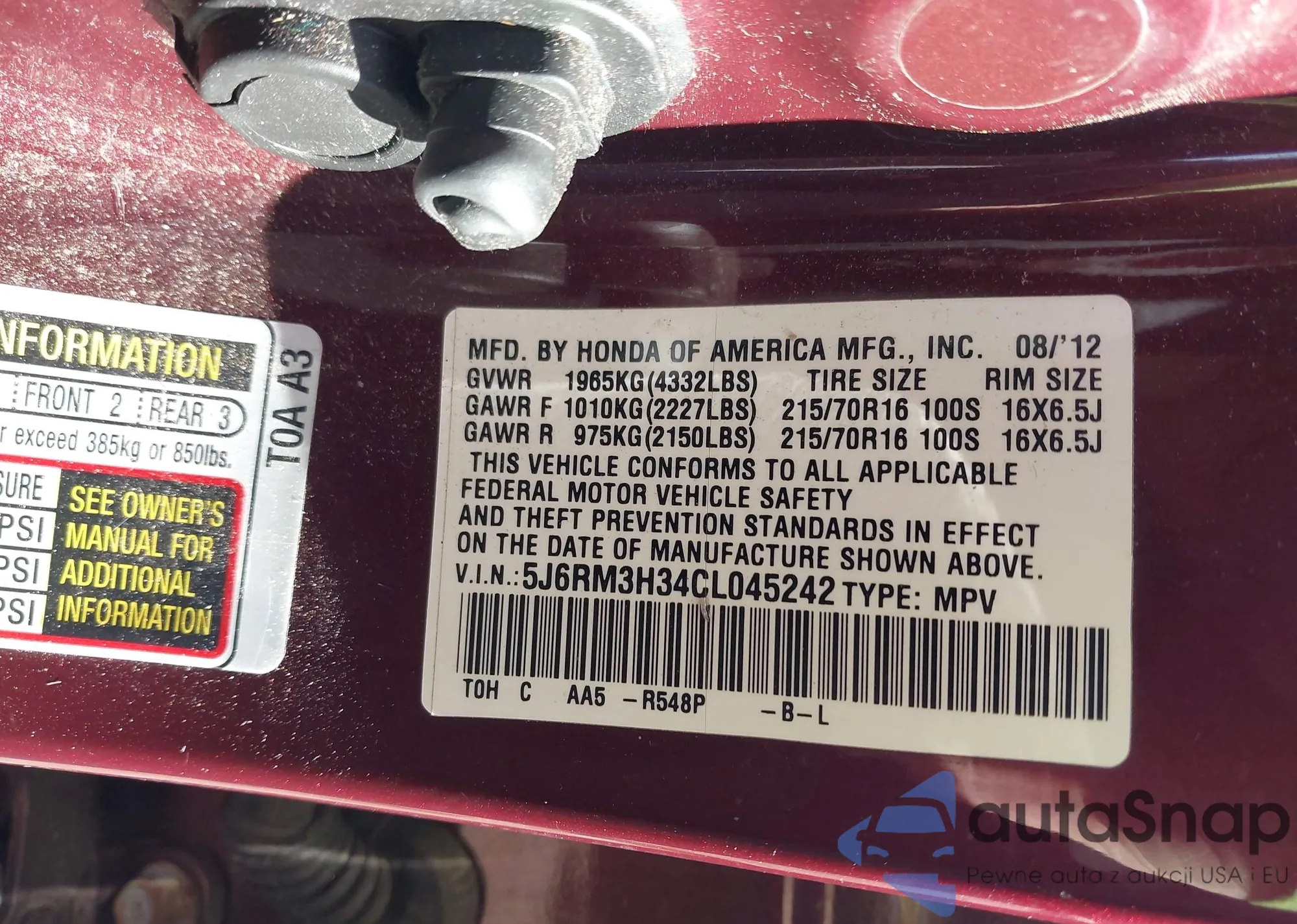 • VIN 5TDZZRAH8MS058625