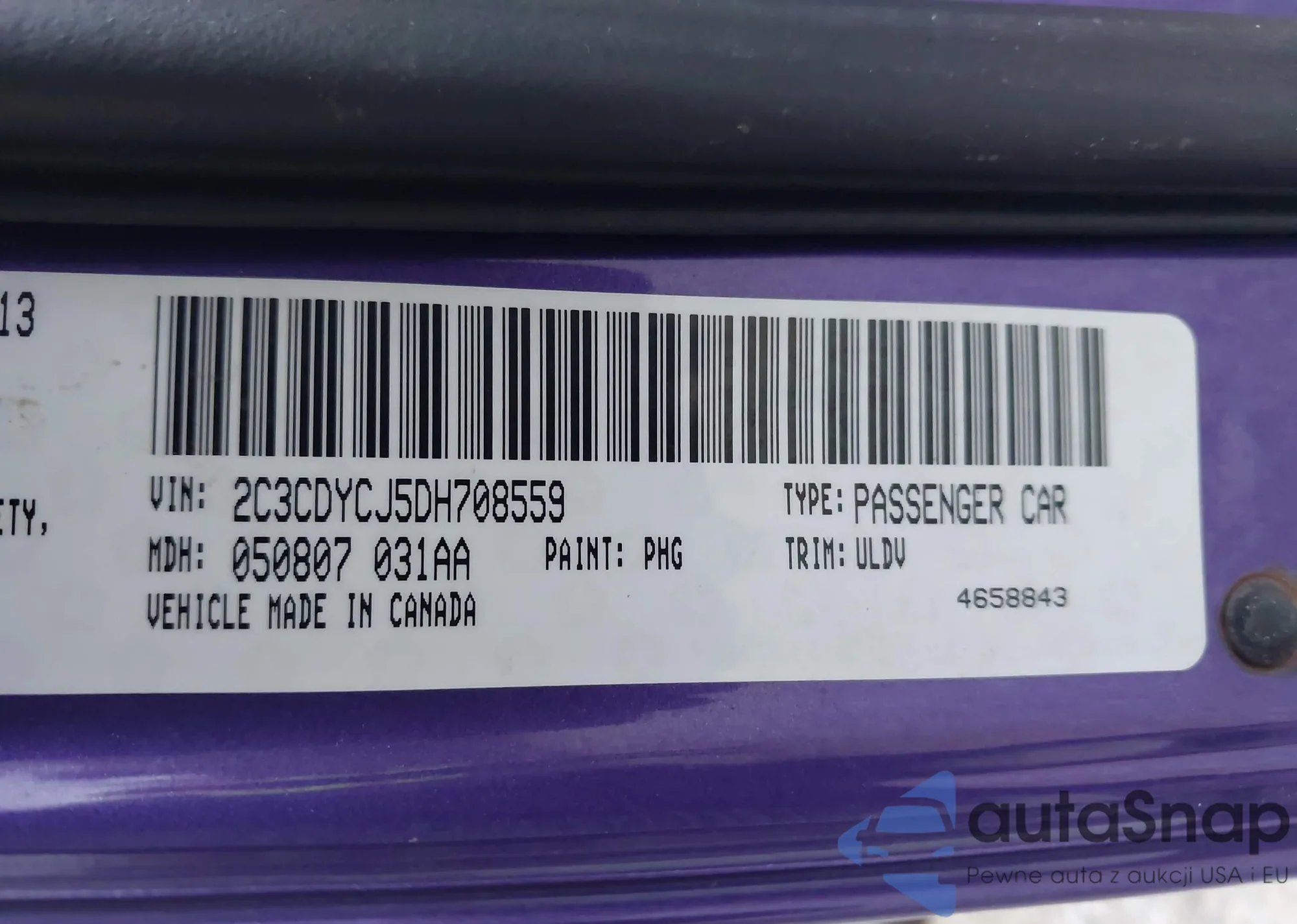 • VIN 2C3CDYCJ5DH708559