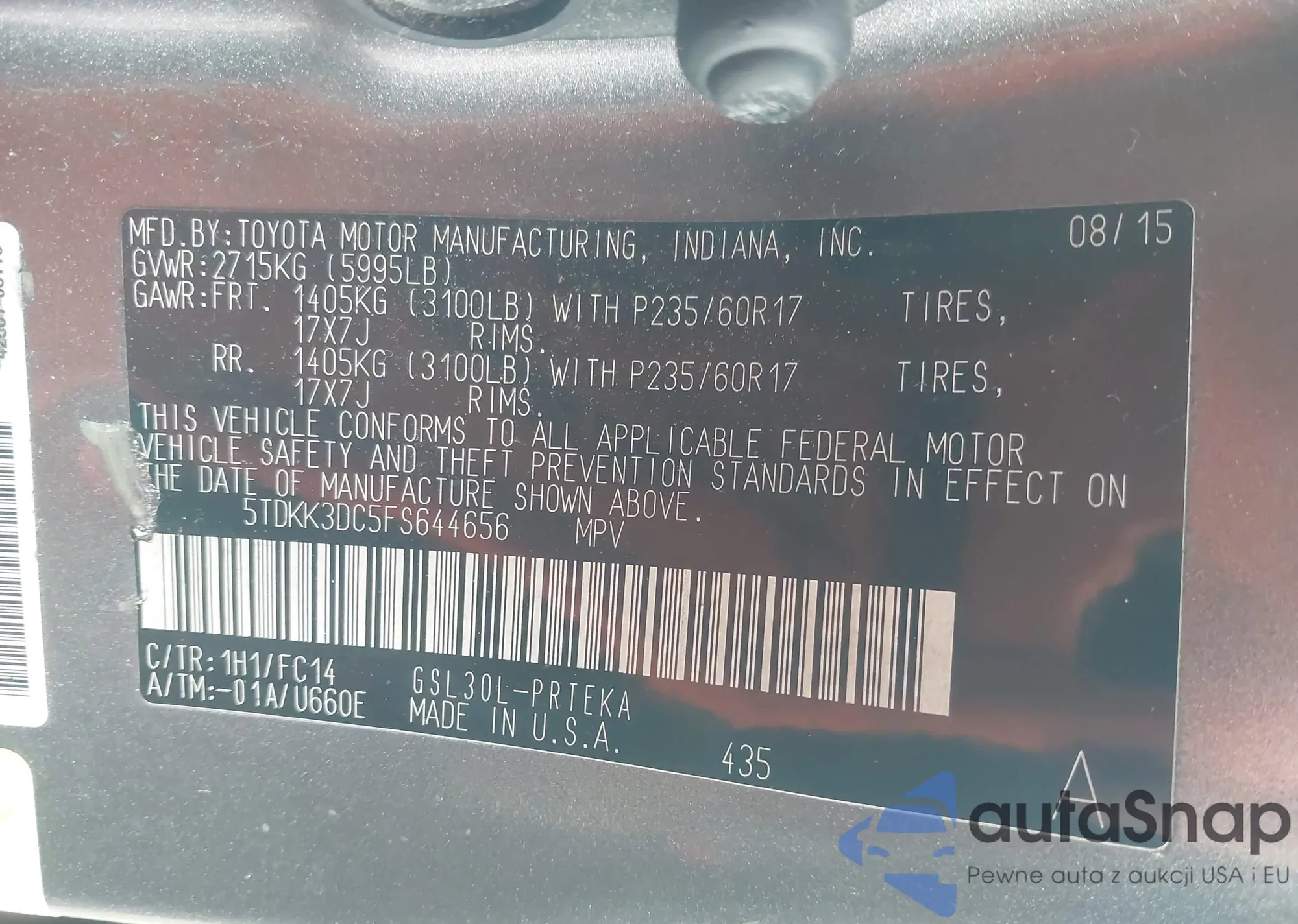 • VIN 5TDKK3DC5SS644656