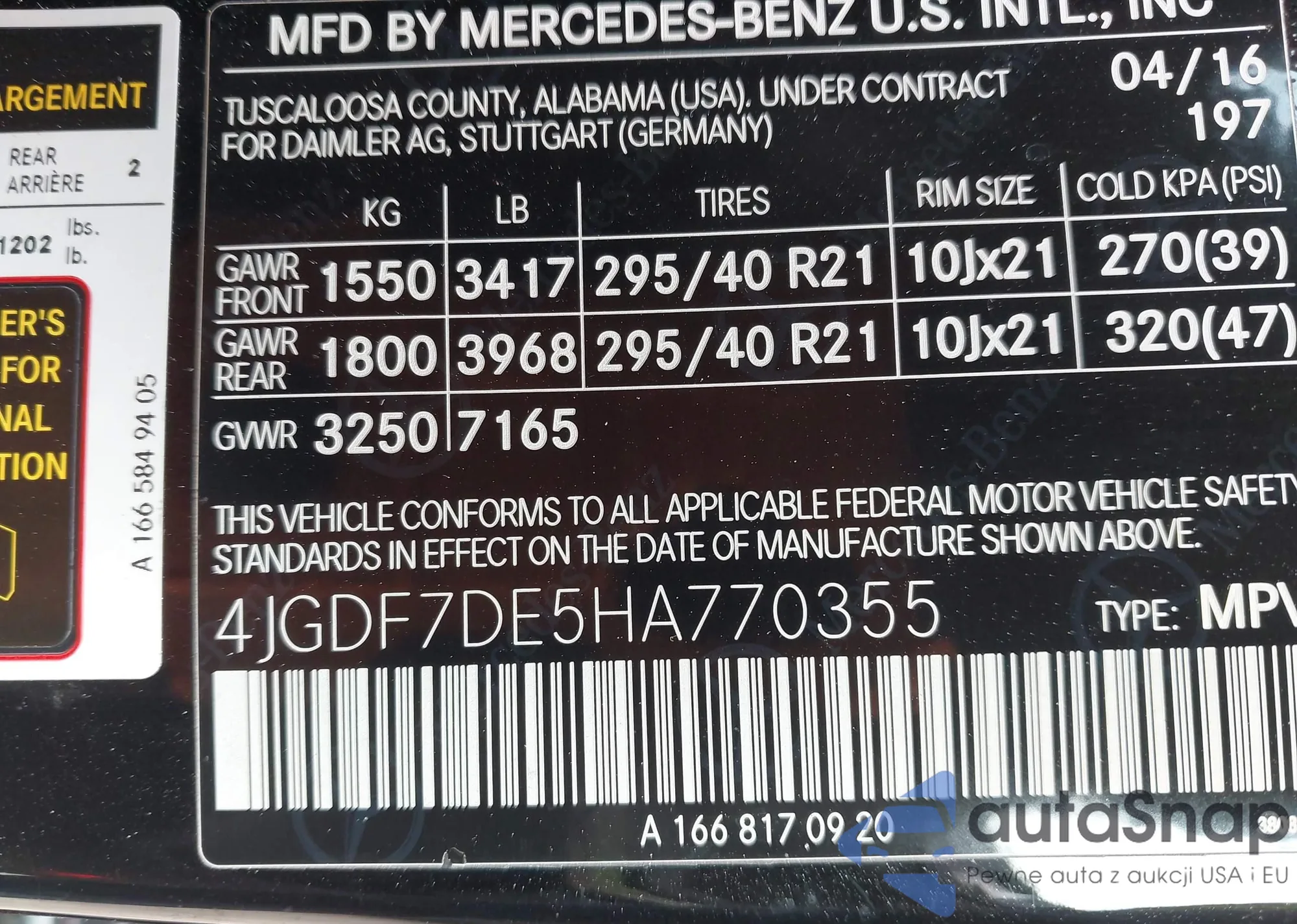 • VIN 4JGDF7DE5HA770355