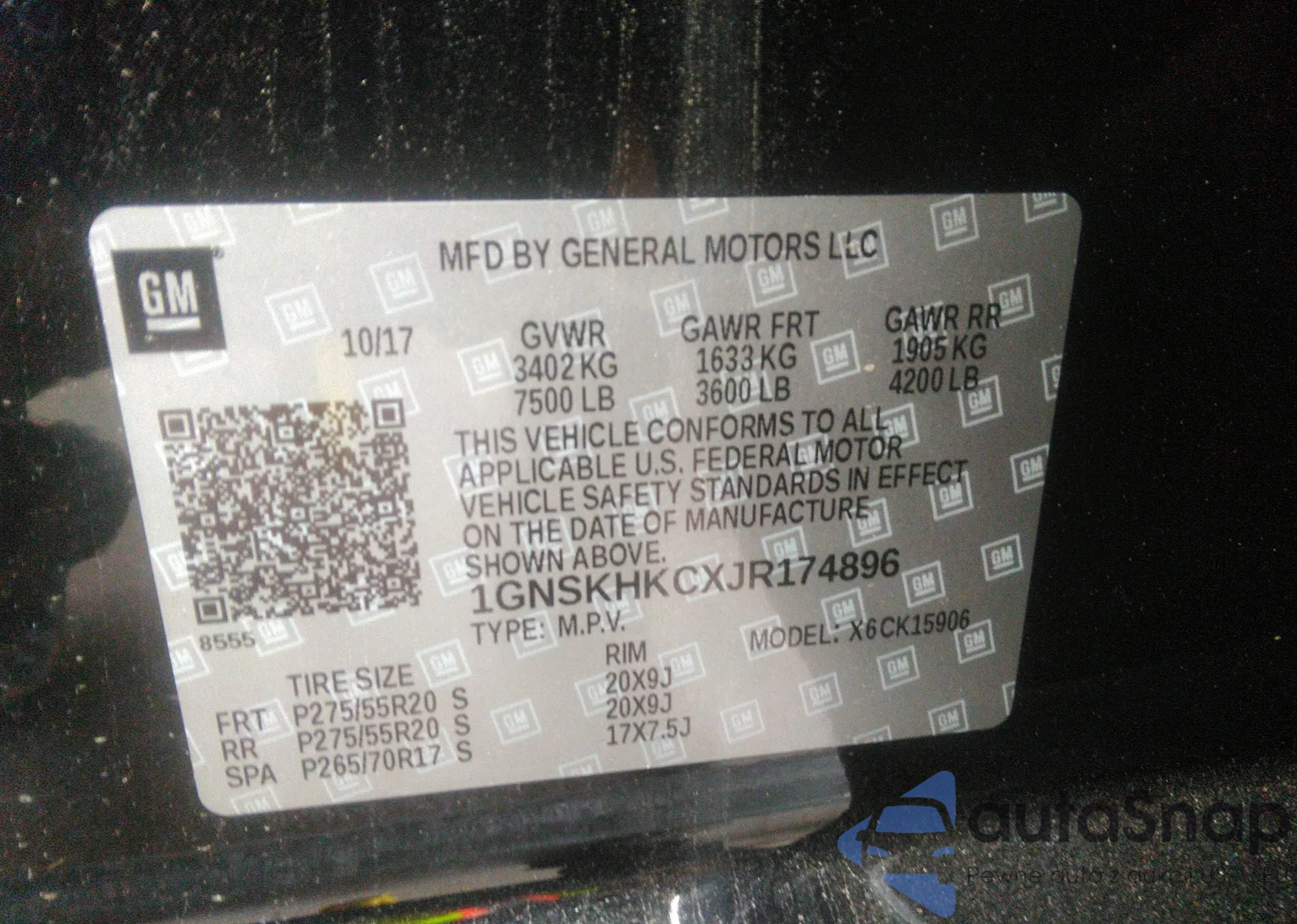 LOT: 43313621 VIN: 1GNSKHKCXJR174896