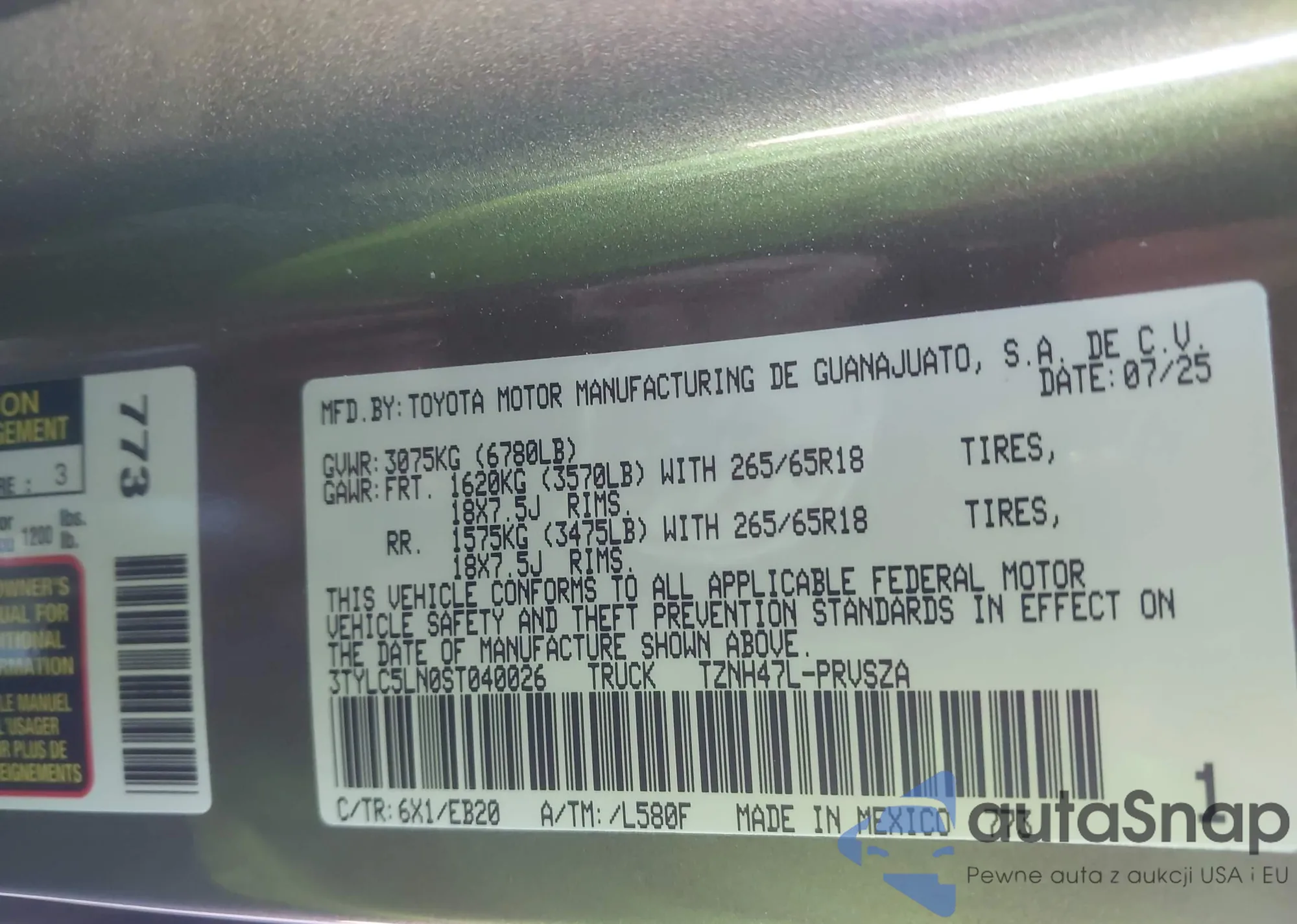 • VIN 3TYLC5LN0ST040026