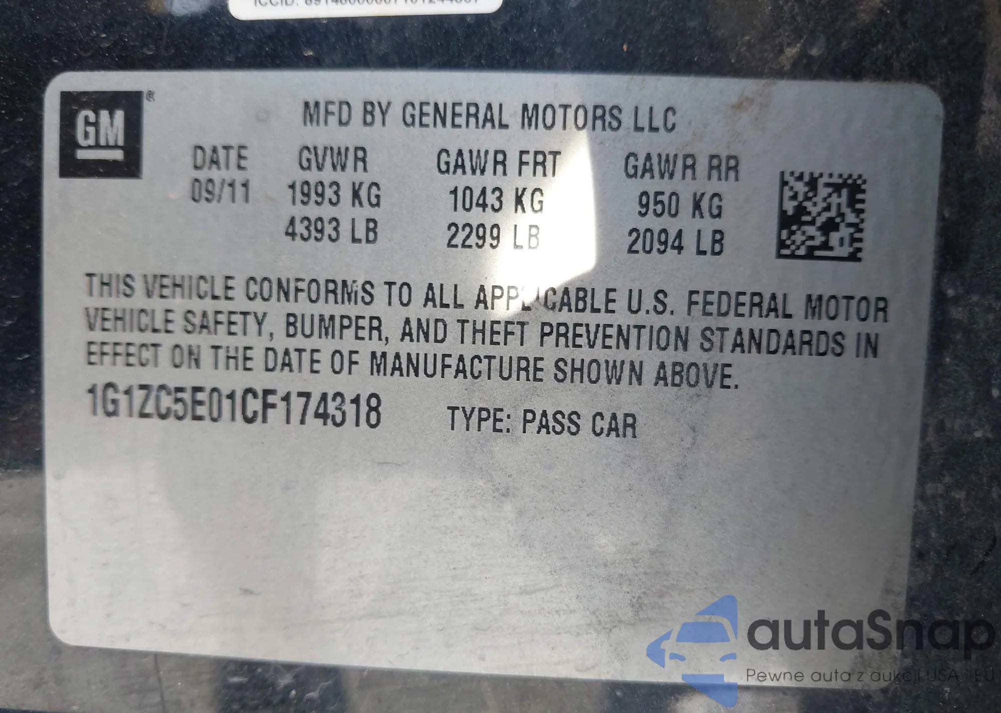 • VIN 1G1ZC5E01CF174318