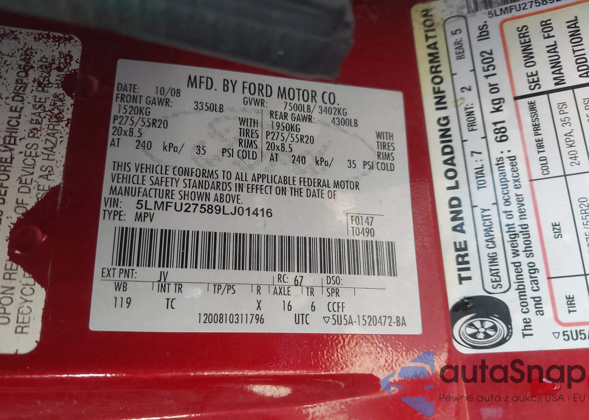 • VIN 5LMFU27589LJ01416