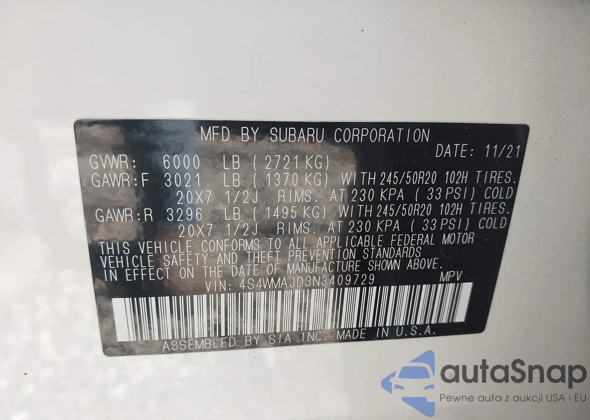 • VIN 4S4WMAJD3N3409729