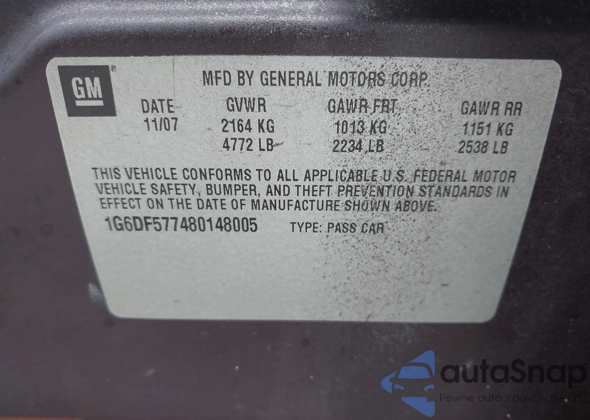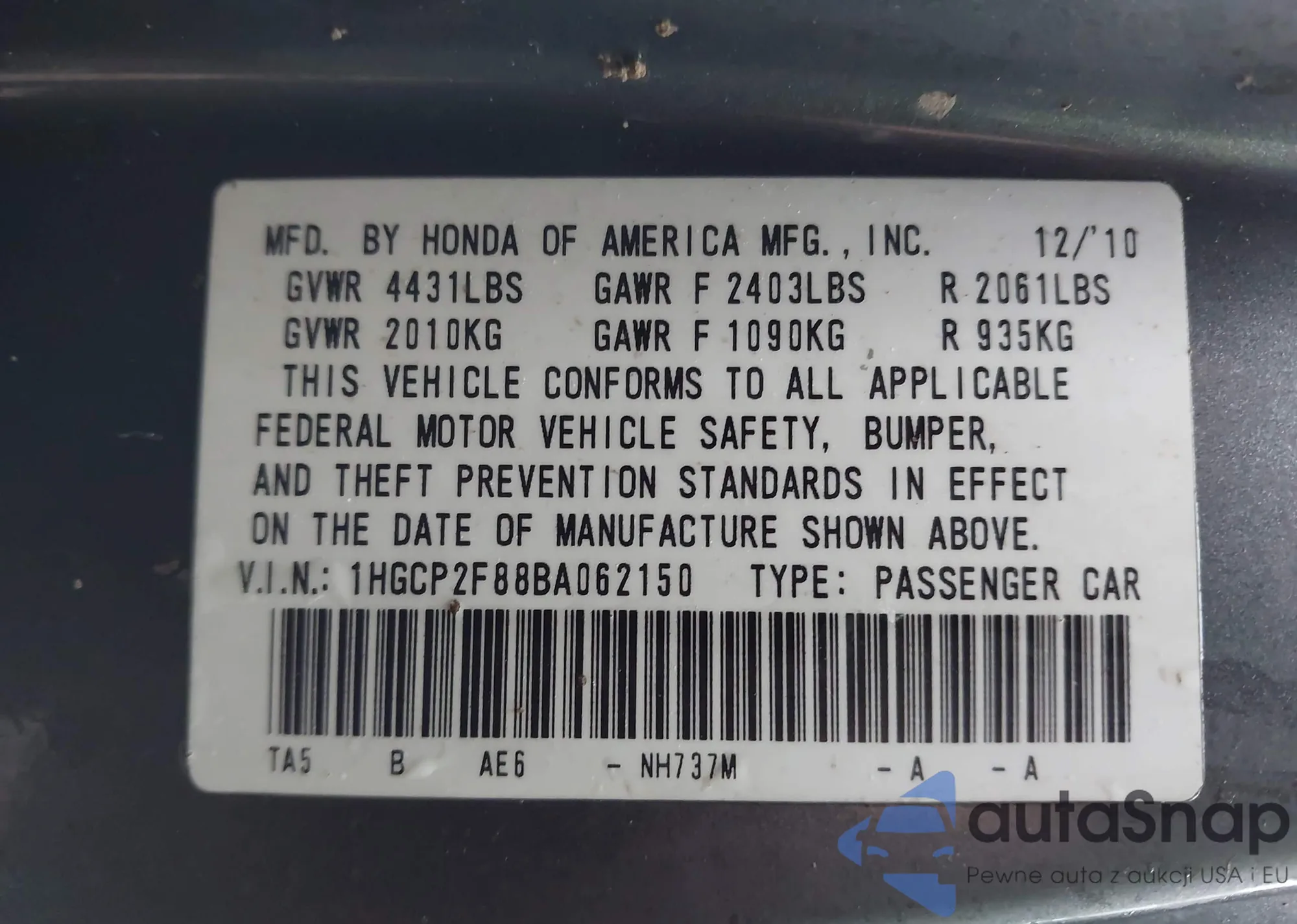 LOT: 44079397 VIN: 1HGCP2F88BA062150