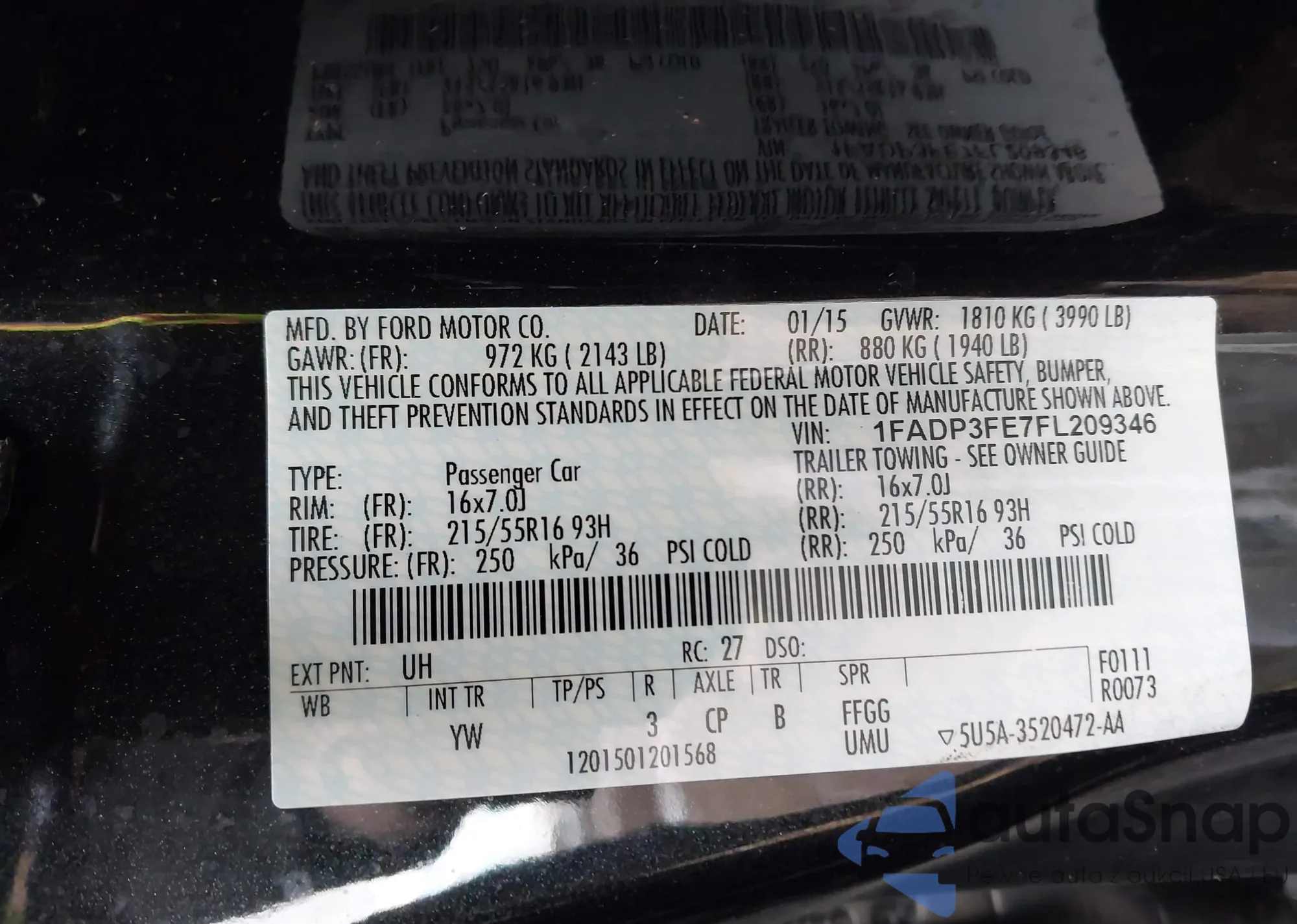 • VIN 1FADP3FE7FL209346