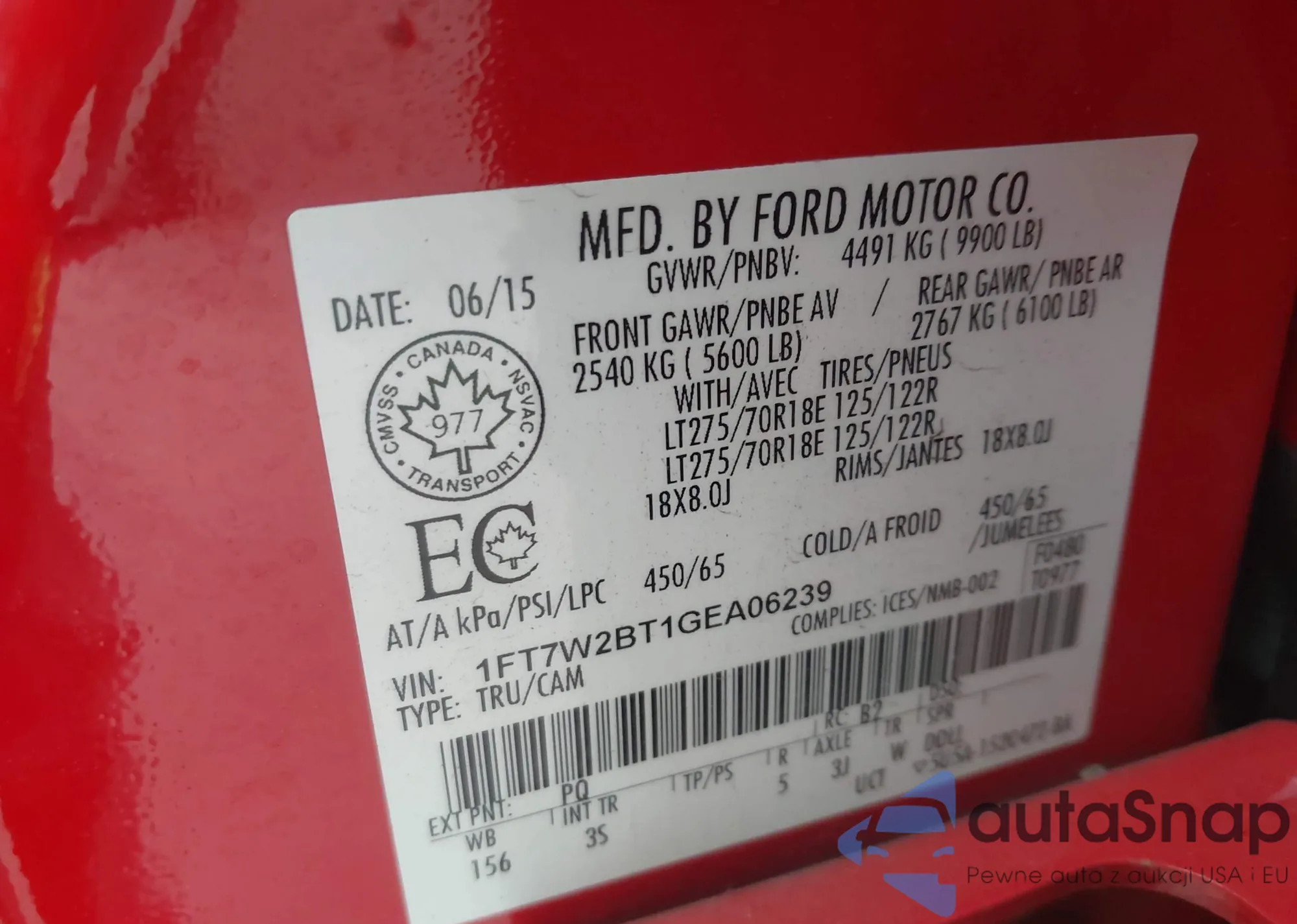 • VIN 1FT7W2BT1GEA06239