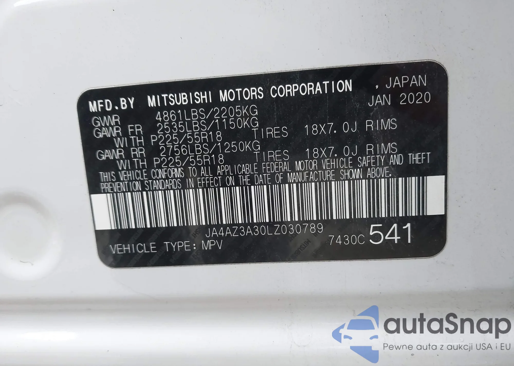 • VIN JA4AZ3A30LZ030789