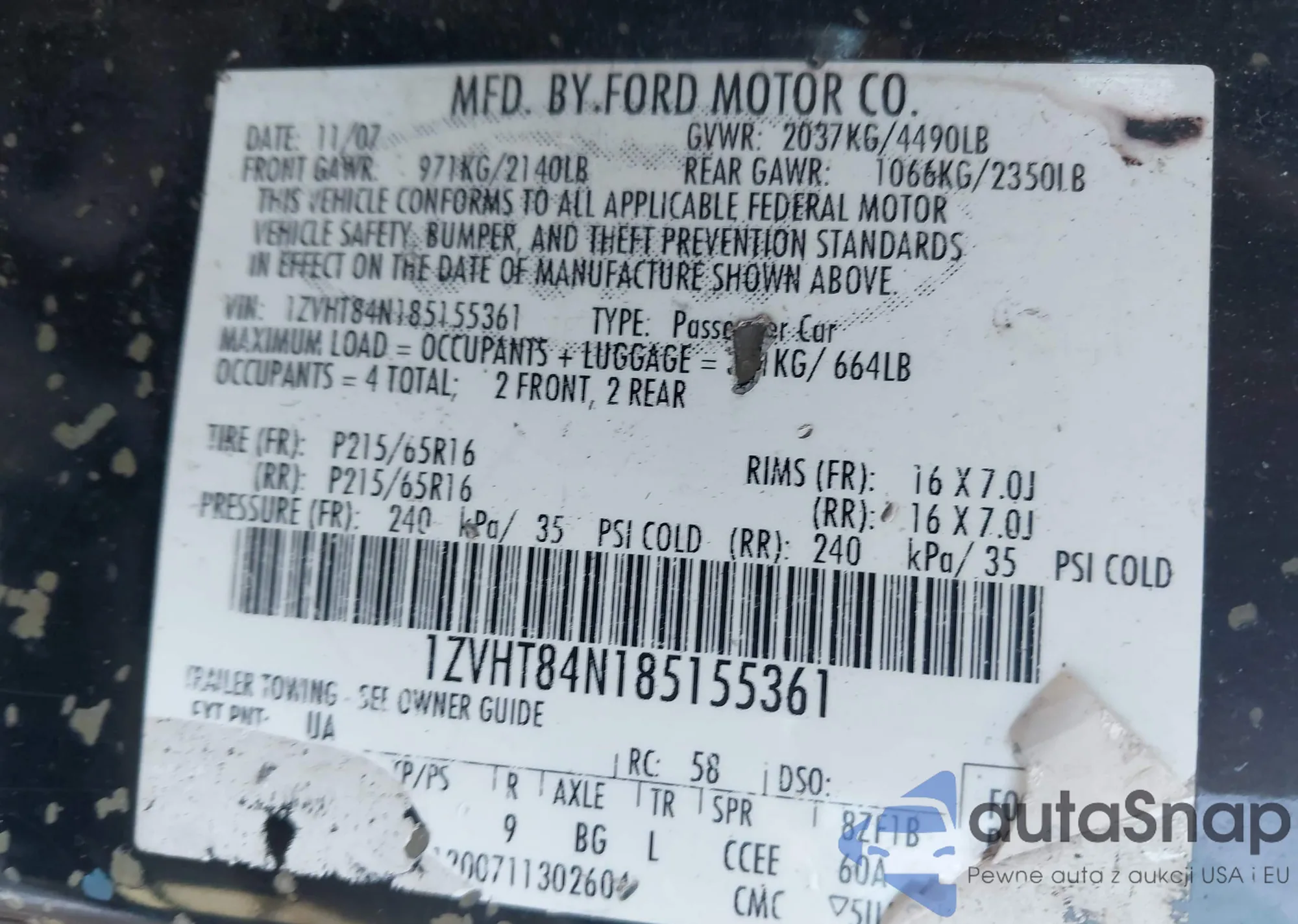 LOT: 43908358 VIN: 1ZVHT84N185155361