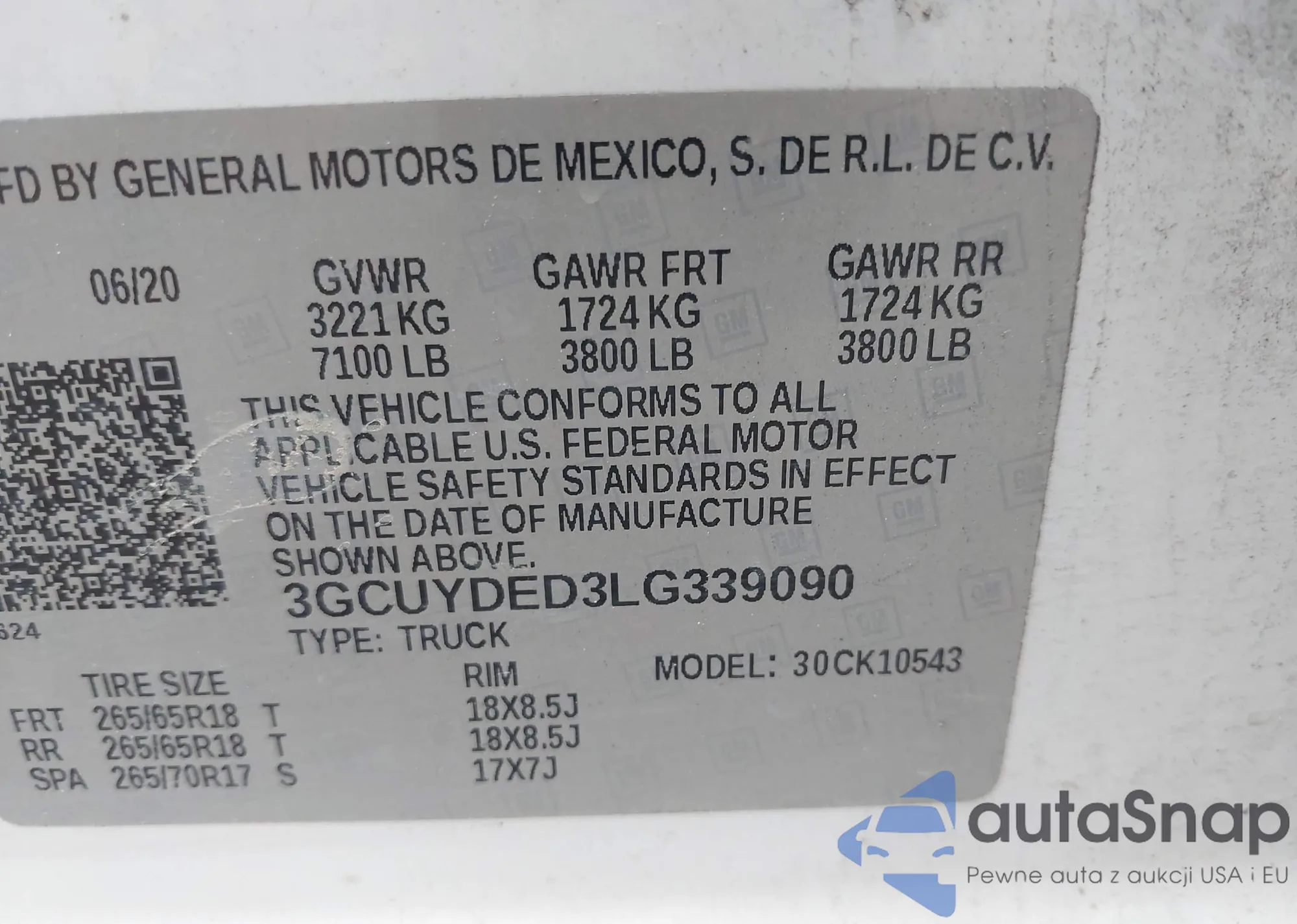 LOT: 44144813 VIN: 3GCUYDED3LG339090