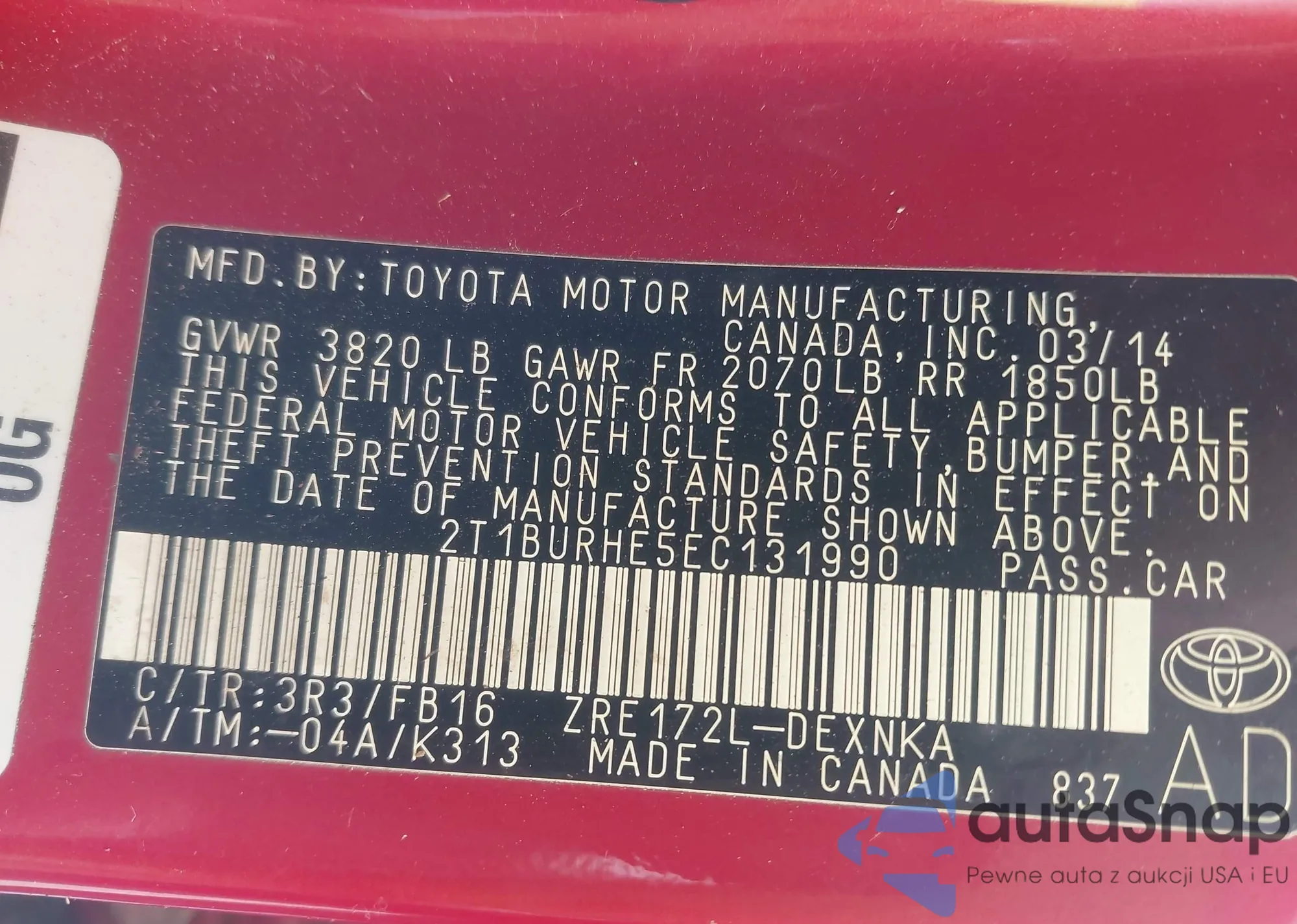 LOT: 43951849 VIN: 4T1BK36B07U221786