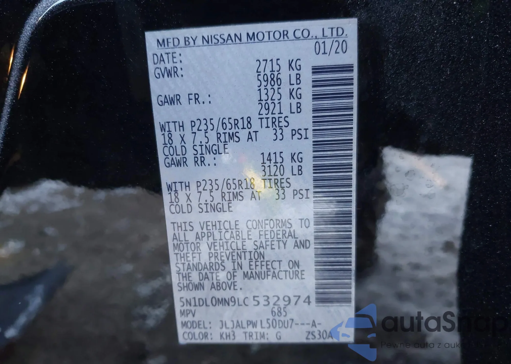 • VIN 5N1DL0MN9LC532974