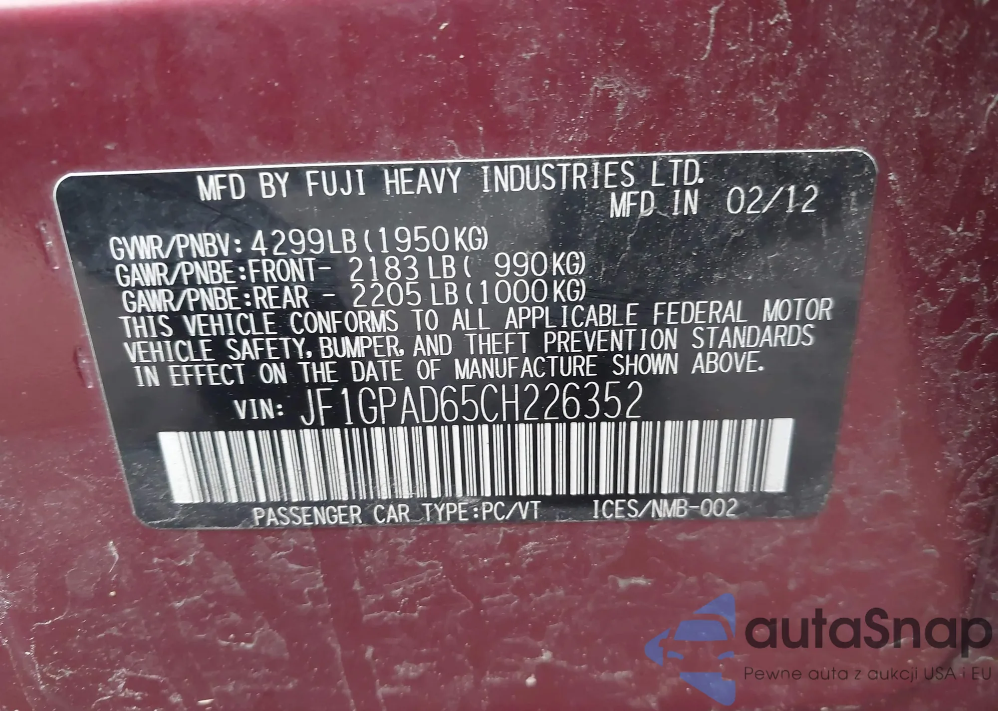 • VIN JF1GPAD65CH226352