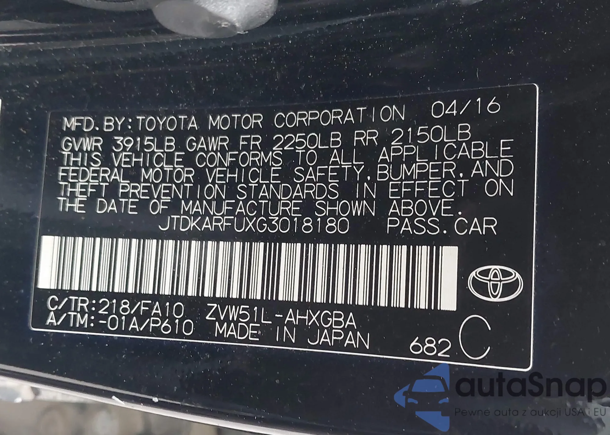 • VIN JF2GTAPC3MH650901