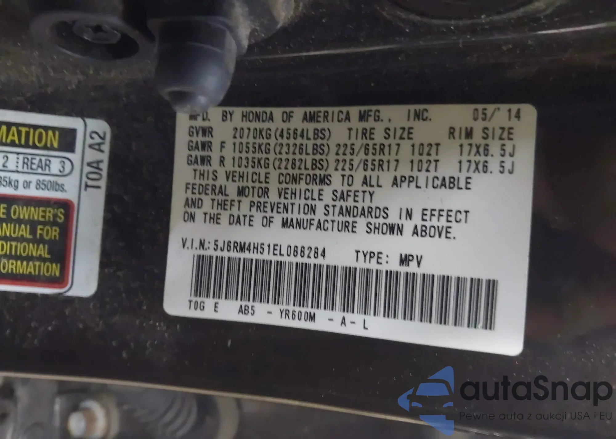 • VIN 5FNRL5H69FB046599