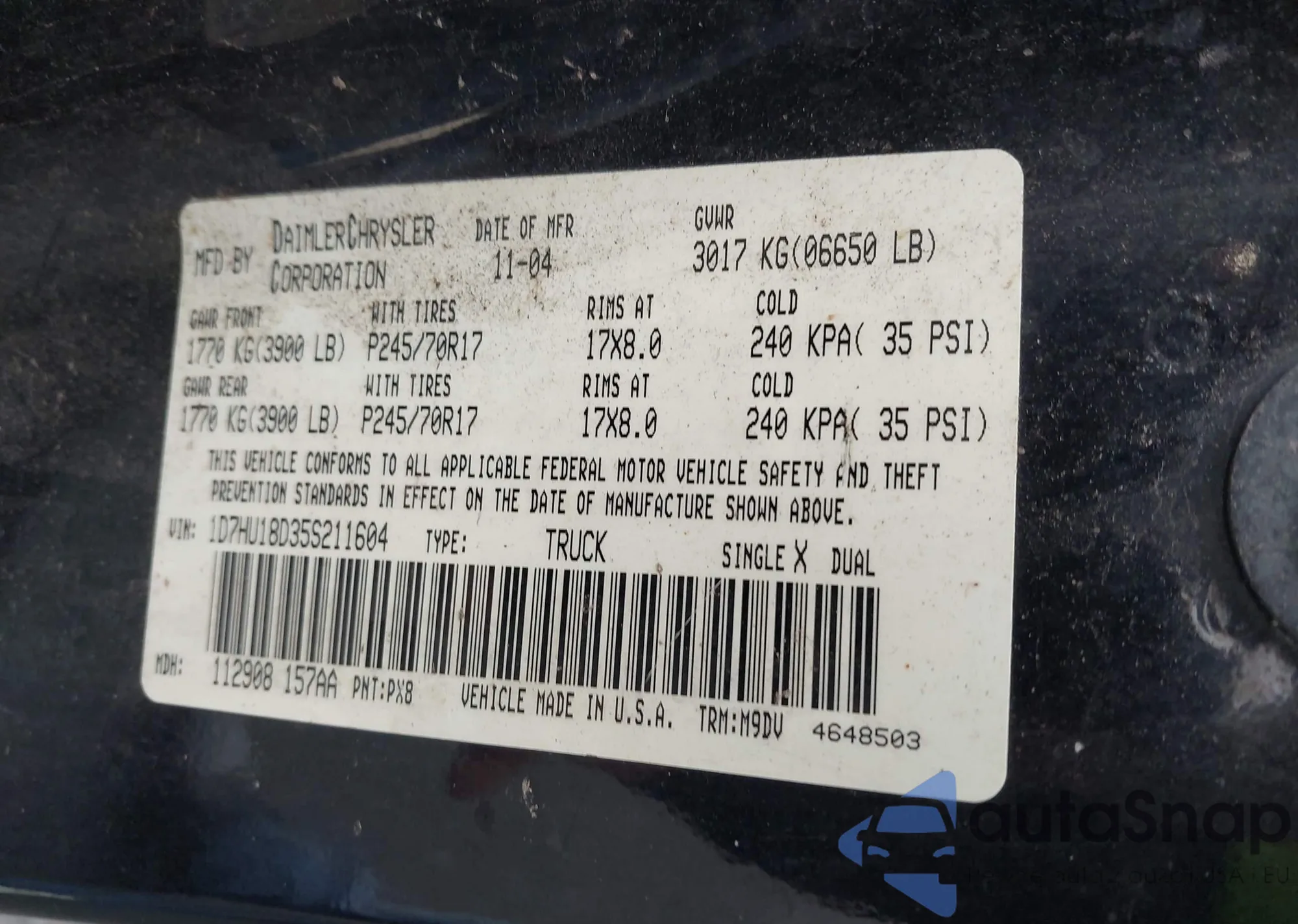 LOT: 43695848 VIN: 1D4GP243X3B220154