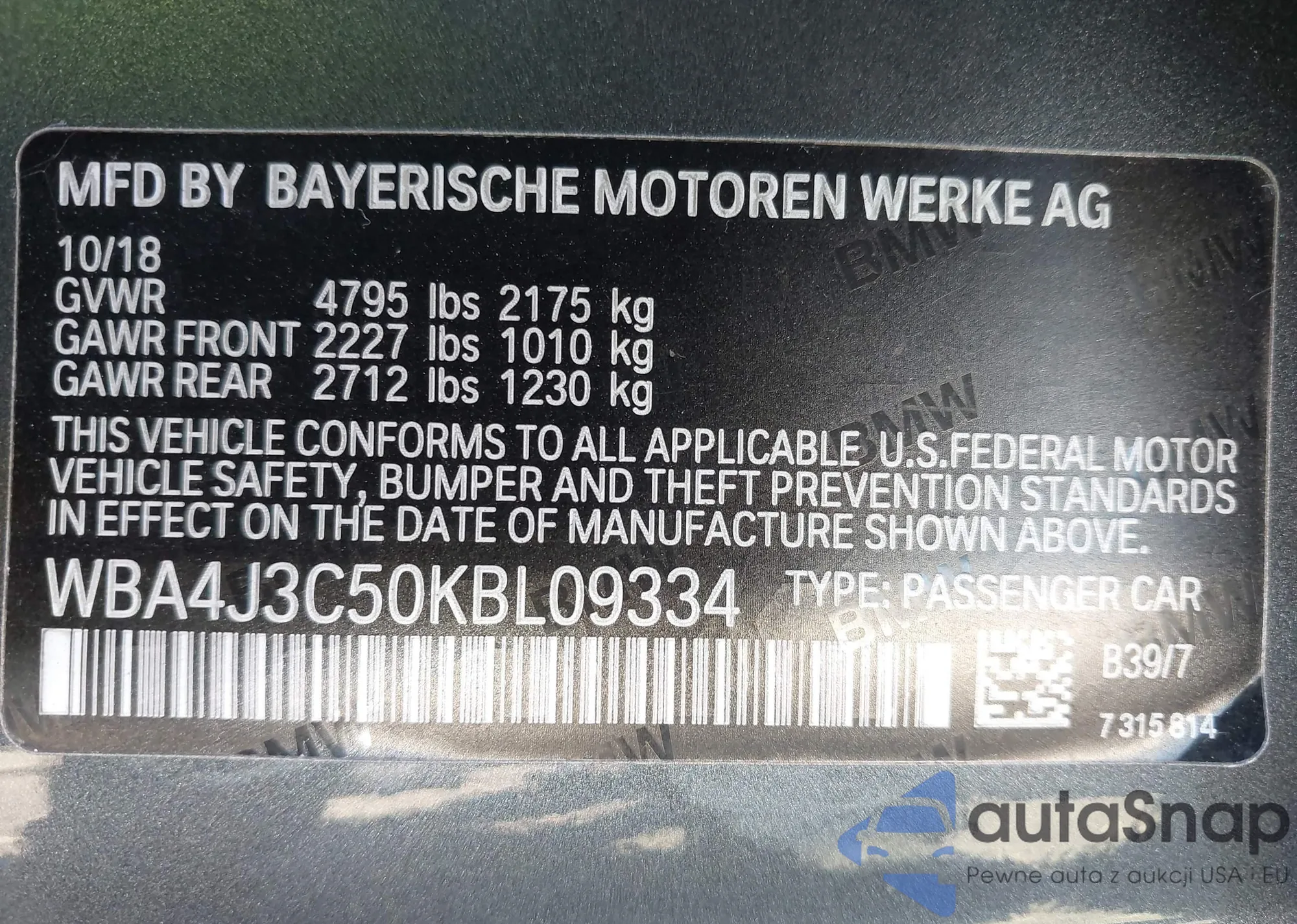 • VIN WBA4J3C50KBL09334