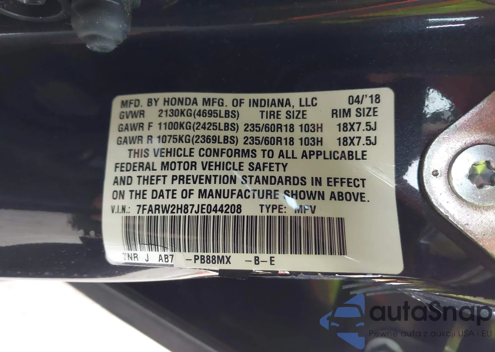 • VIN 7FARW2H87JE044208