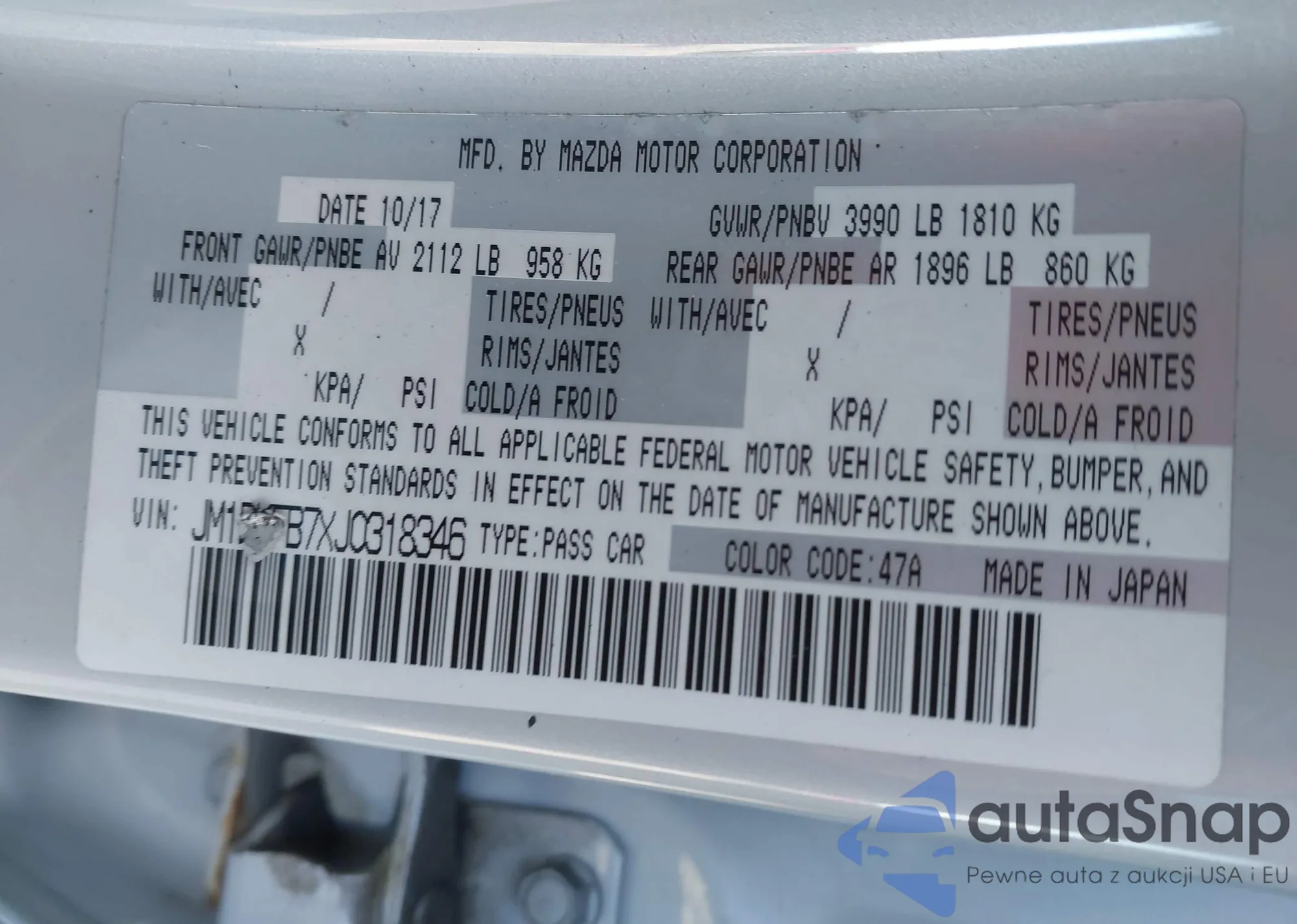 LOT: 43805920 VIN: JM1DKFB7XJ0318346