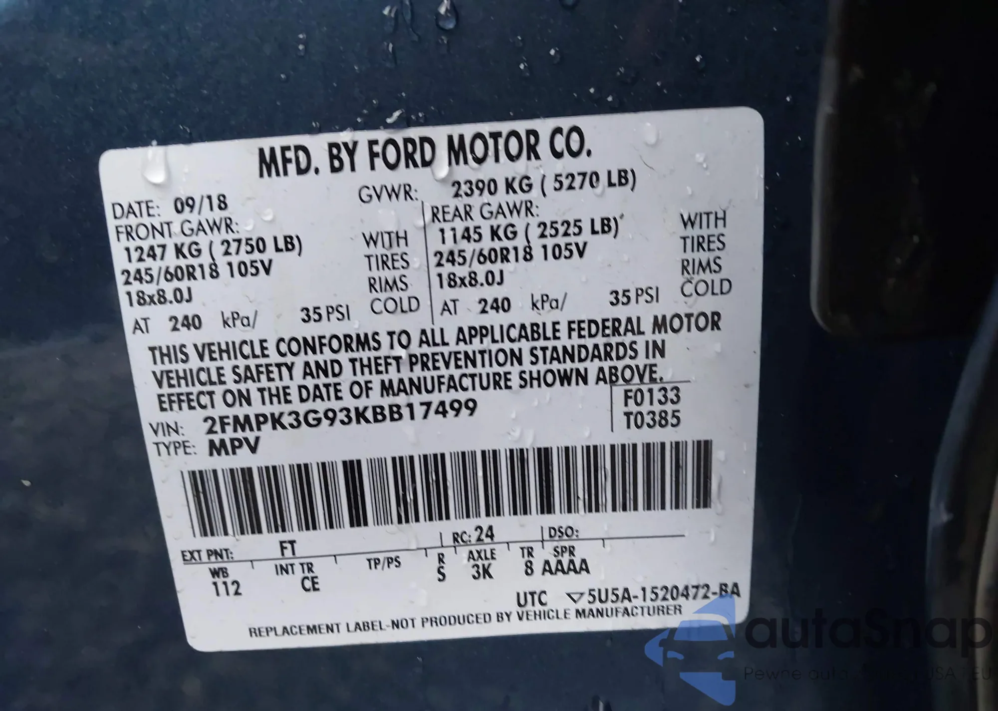 • VIN 2FMPK3G93KBB17499