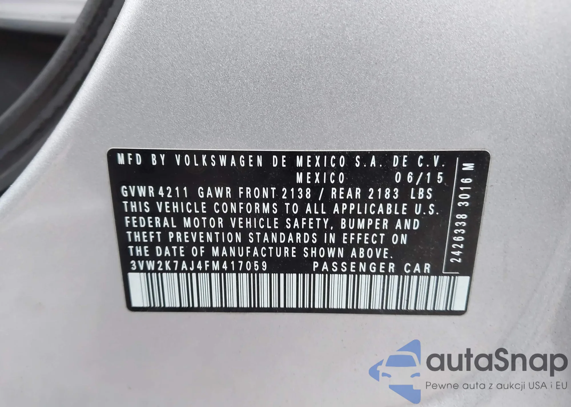 • VIN JN1BV7AR6FM401671